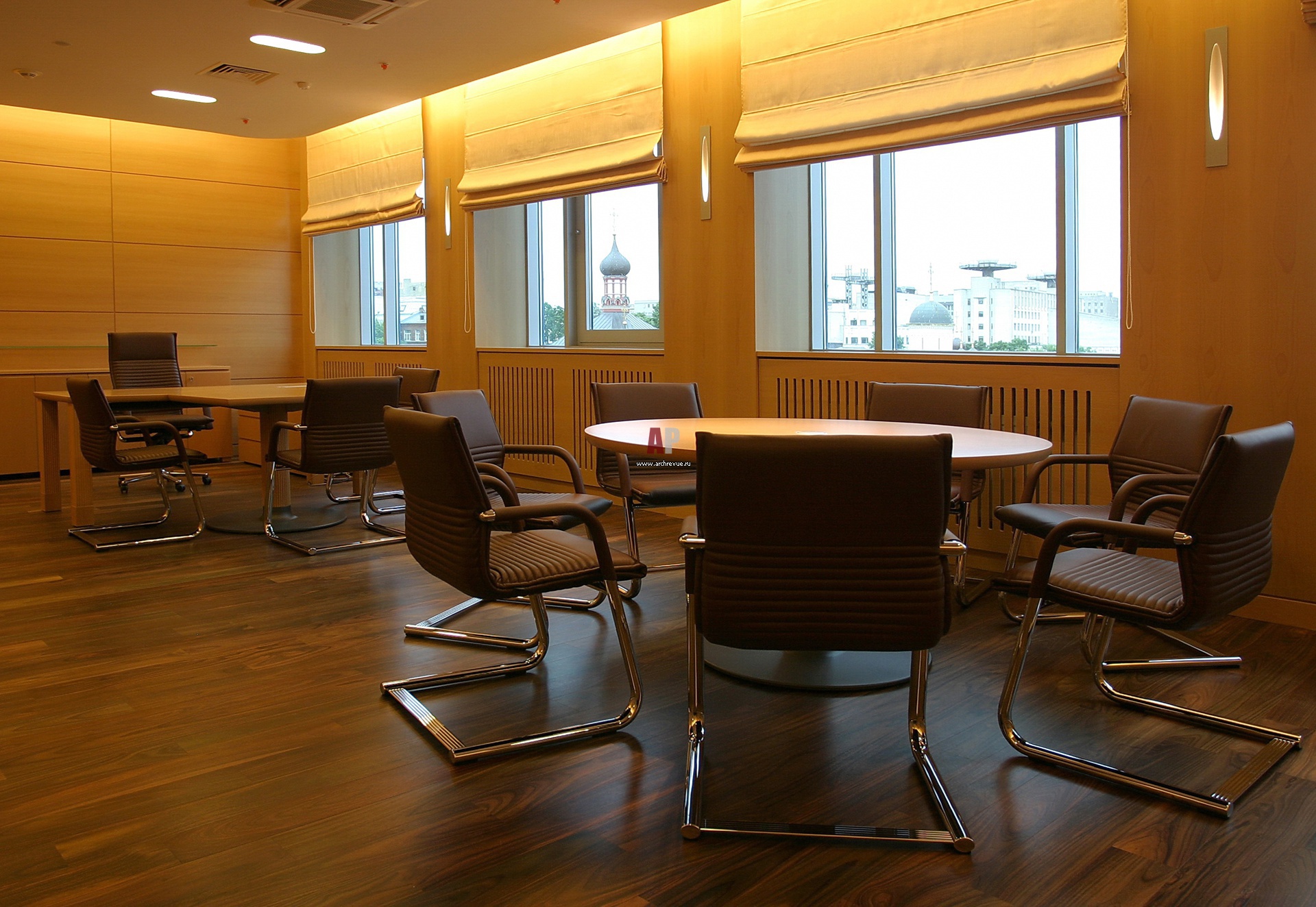 Интерьер кабинета заместителя руководителя компании выдержан в дереве. На окнах – римские шторы, создающие неформальную обстановку.