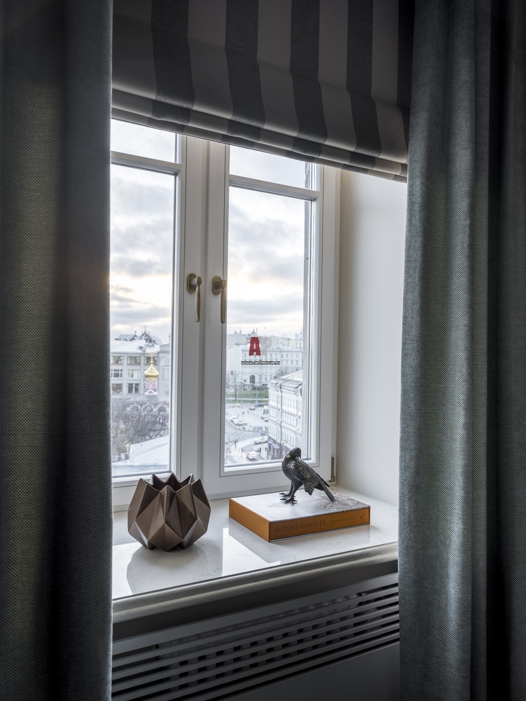 Окна приватных помещений обращены на Славянскую площадь и церковь Всех Святых на Кулишках.