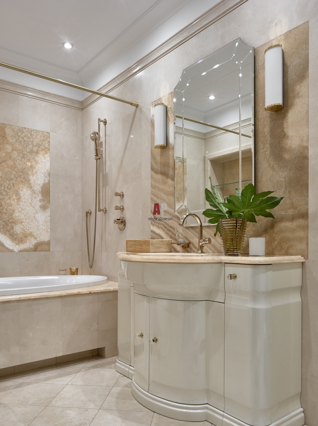 Ванная комната при хозяйской спальне. Умывальник, Eurodesign. Санфаянс, Villeroy & Boch. Ванна, Hoesch. Смесители, Dornbracht.