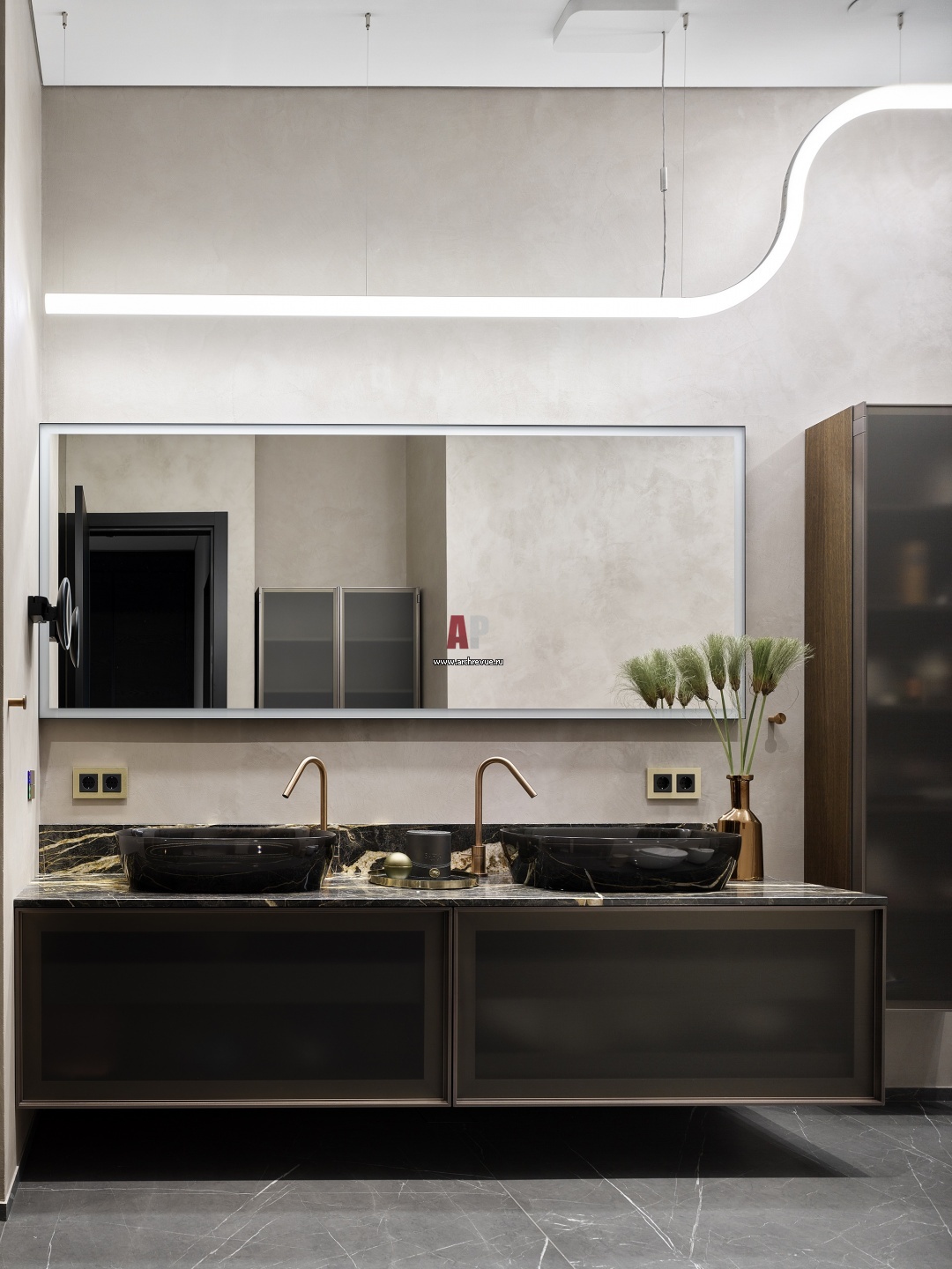 Хозяйская ванная комната. Сантехника и мебель с тонированным стеклом, Antonio Lupi.