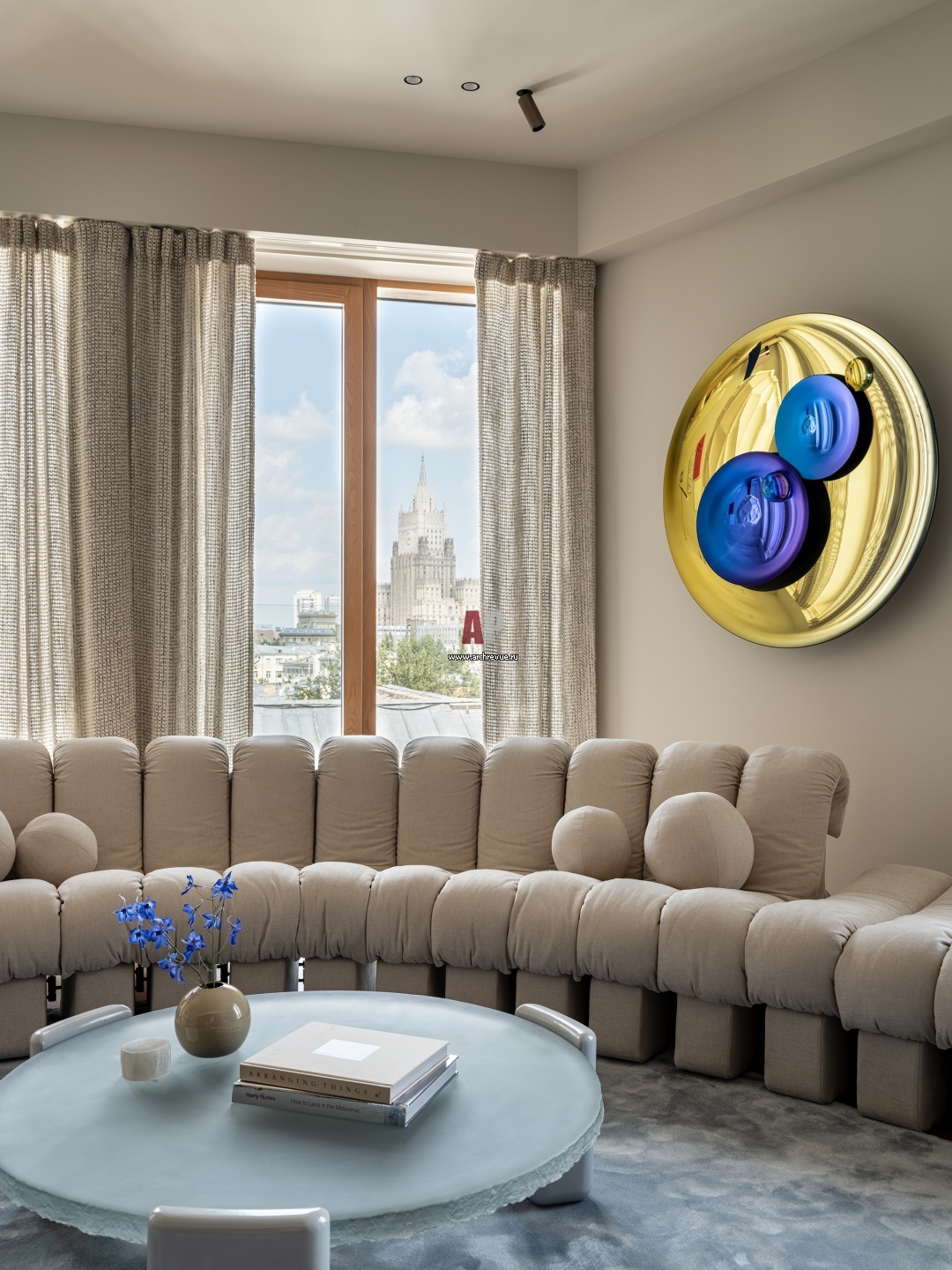Гостиная. Арт-объект на стене – зеркало, Chirsophe Gaignon.