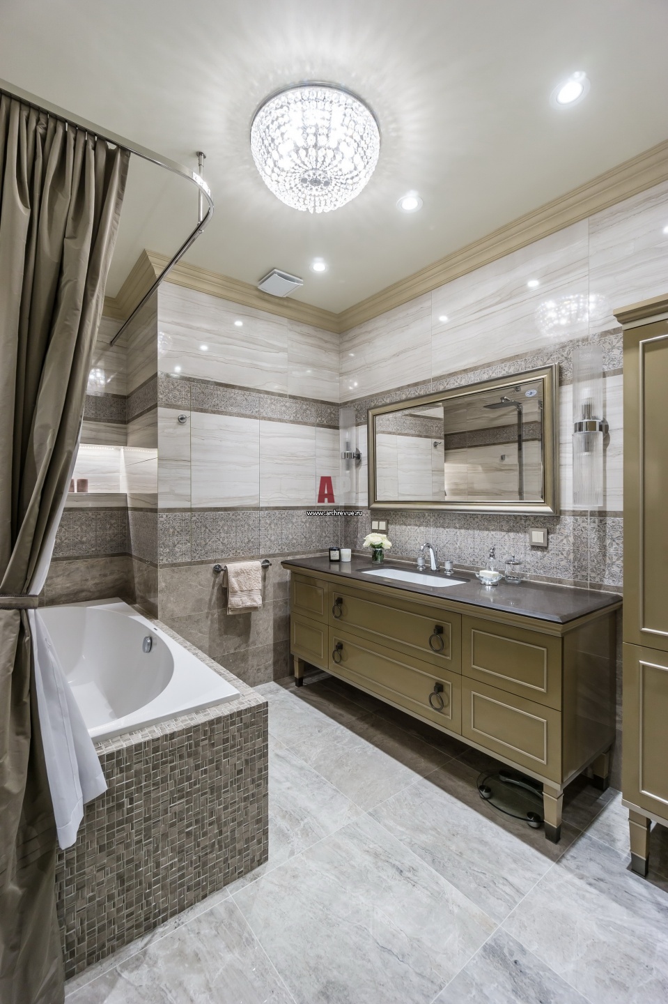 Фото интерьера ванной комнаты квартиры в стиле неоклассика Фото интерьера санузла квартиры в стиле неоклассика
