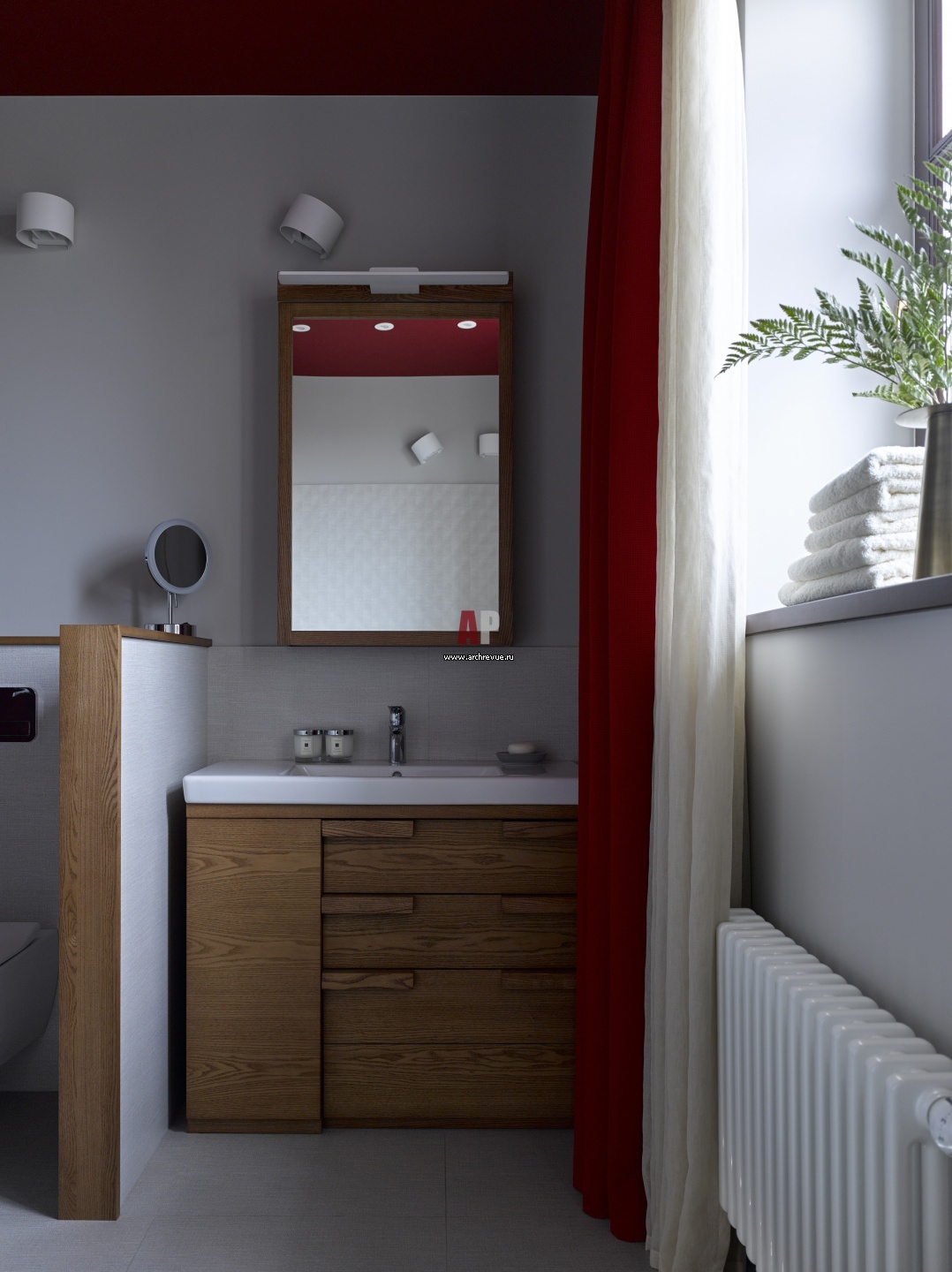 Фото одного из санузлов. В доме пять ванных комнат, мебель в них сделана на заказ на российском производстве. Сантехника, Villeroy & Boch.