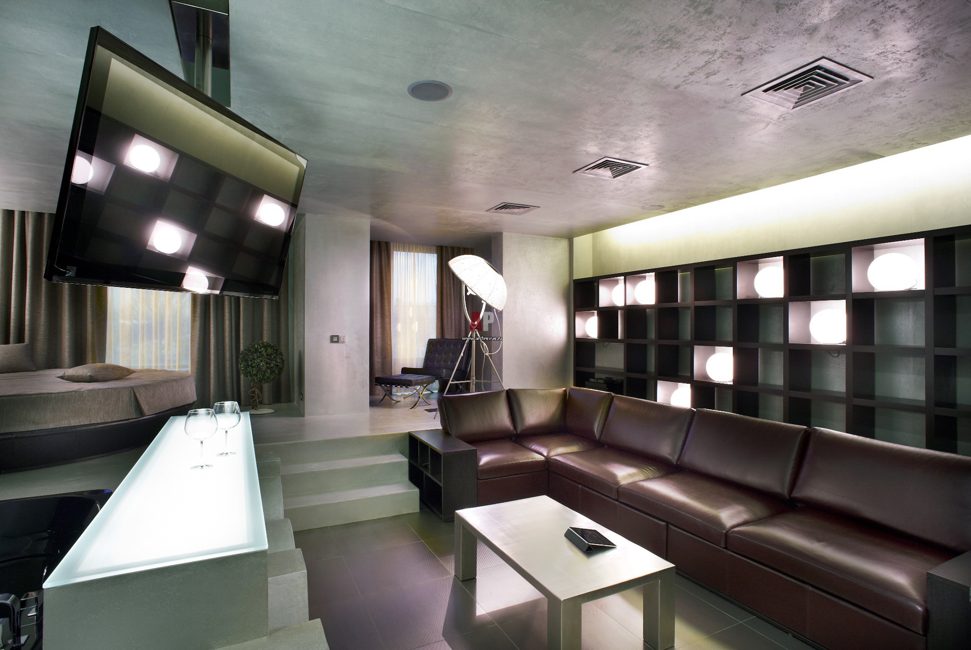 Фото интерьера зоны отдыха небольшой квартиры в стиле хай-тек