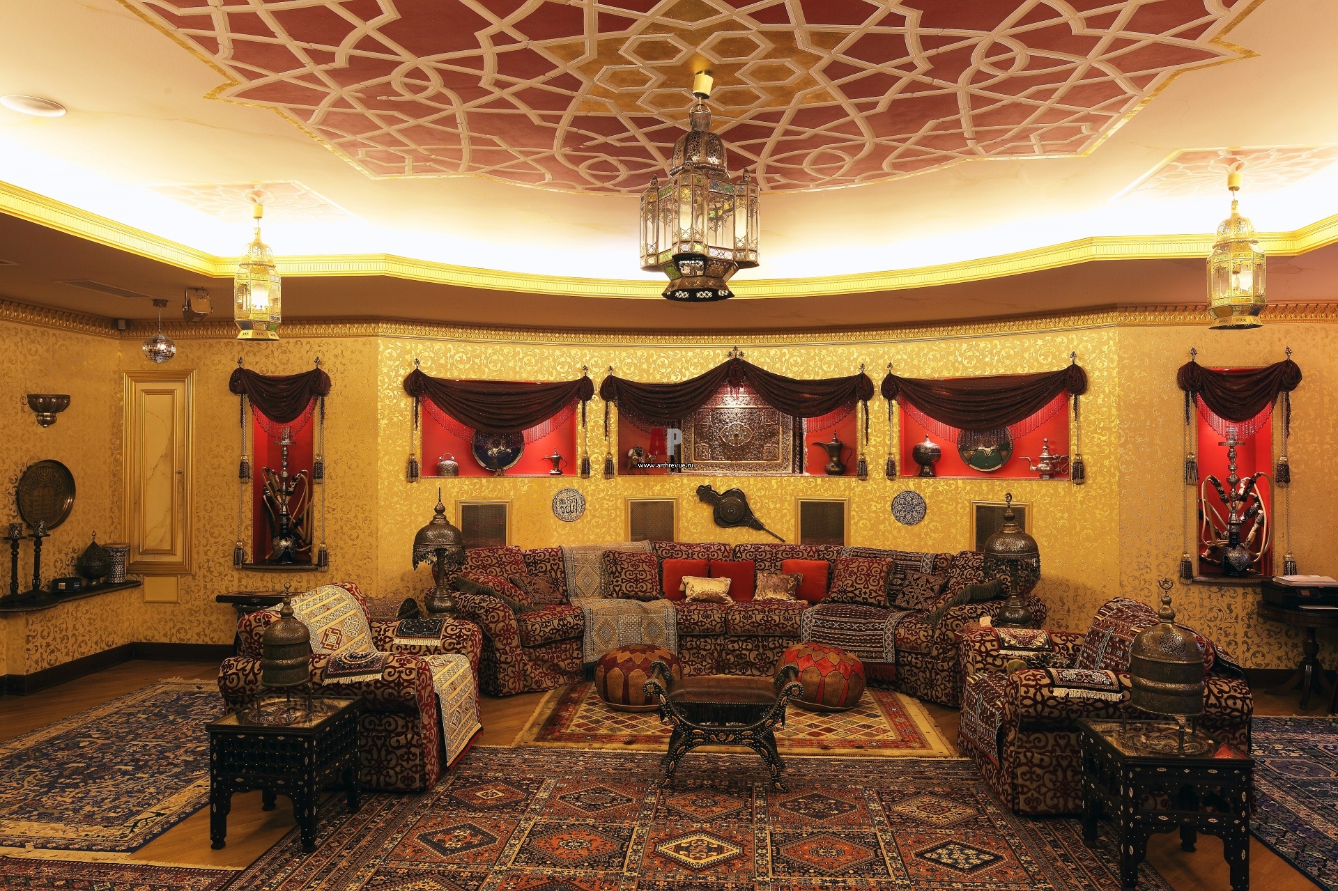 Восточная комната отдыха. Потолок и стены оформлены трафаретной росписью с золочением.