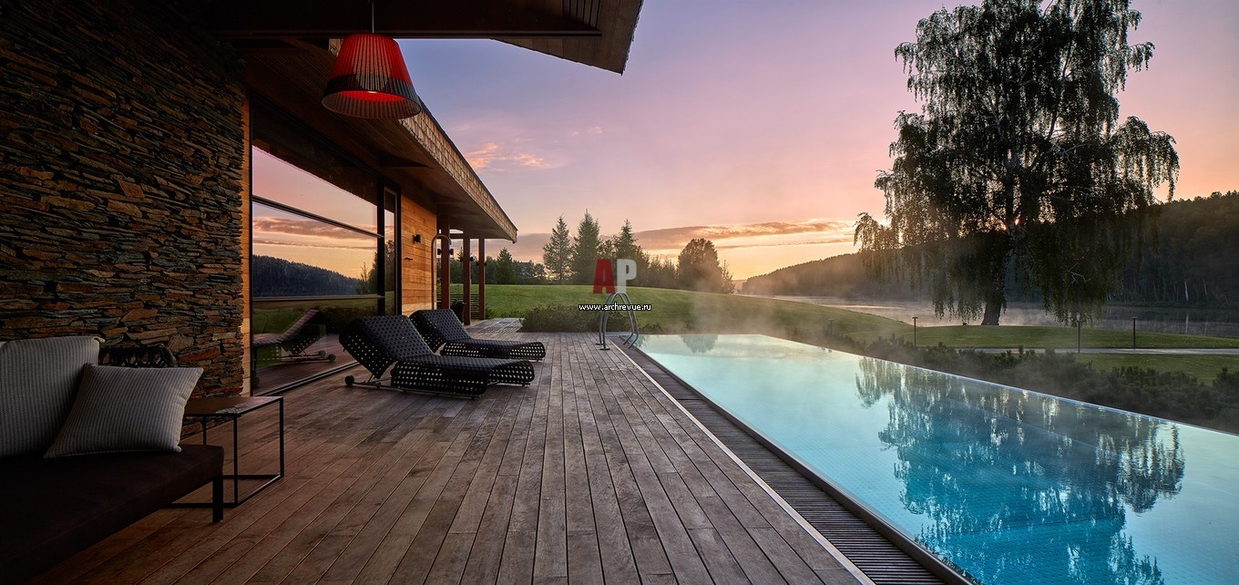 Фото уличного бассейна в эко-стиле.