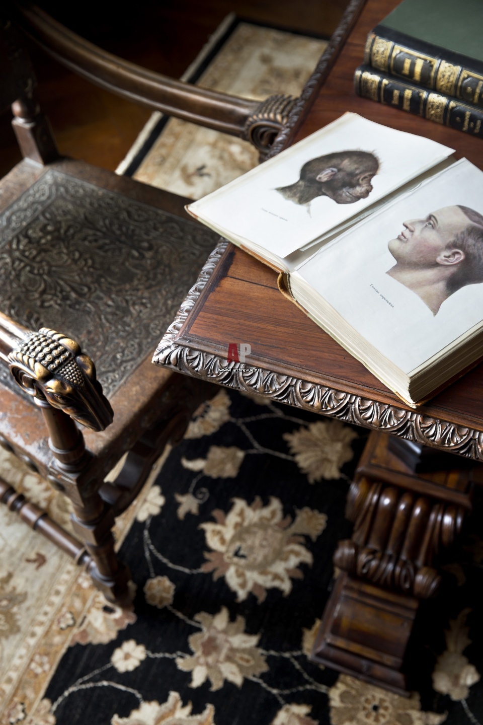Фрагмент декора исторического дома с антиквариатом и средневековой мебелью.