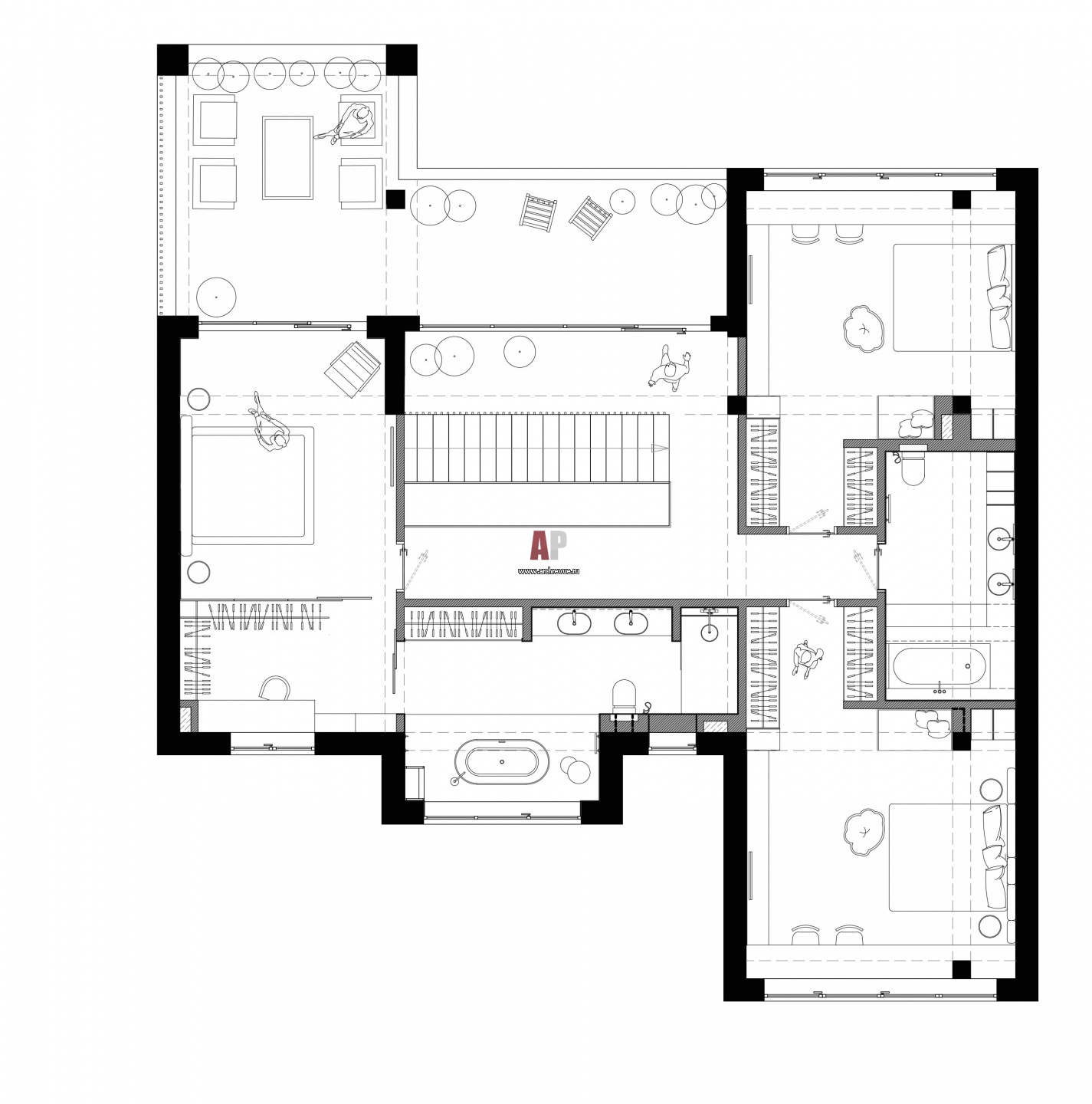План второго этажа двухэтажного дома в Сочи. Общая площадь – 300 кв. м.