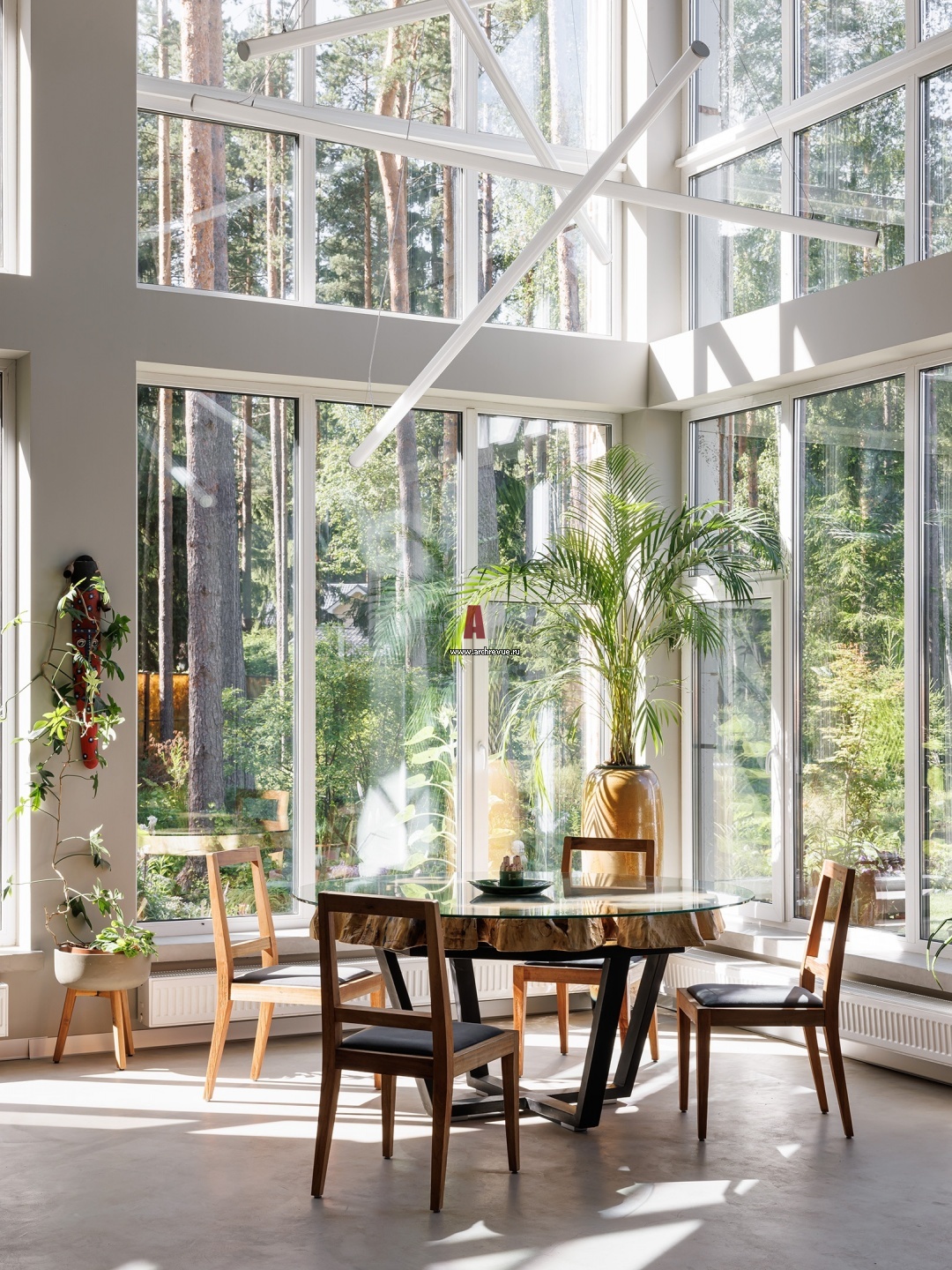 Столовая. Обеденный стол изготовлен из тополя, который рос во дворе Адмиралтейства. «Ему более 100 лет, и он видел революцию! Дерево снесло ураганом, и нам досталась его прикорневая шейка», - рассказывает архитектор.