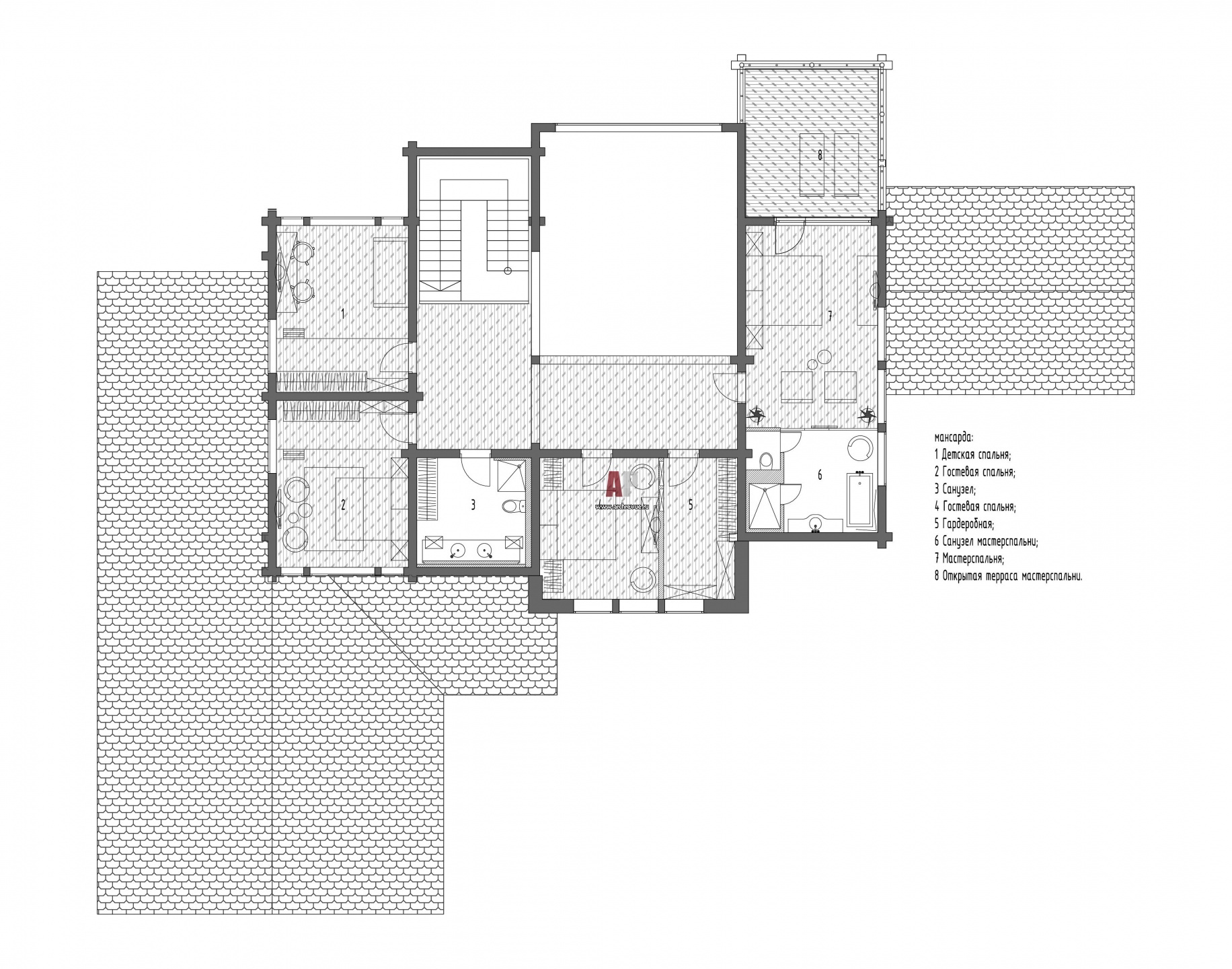 Планировка мансарды 3-х этажного шале со СПА и бассейном.