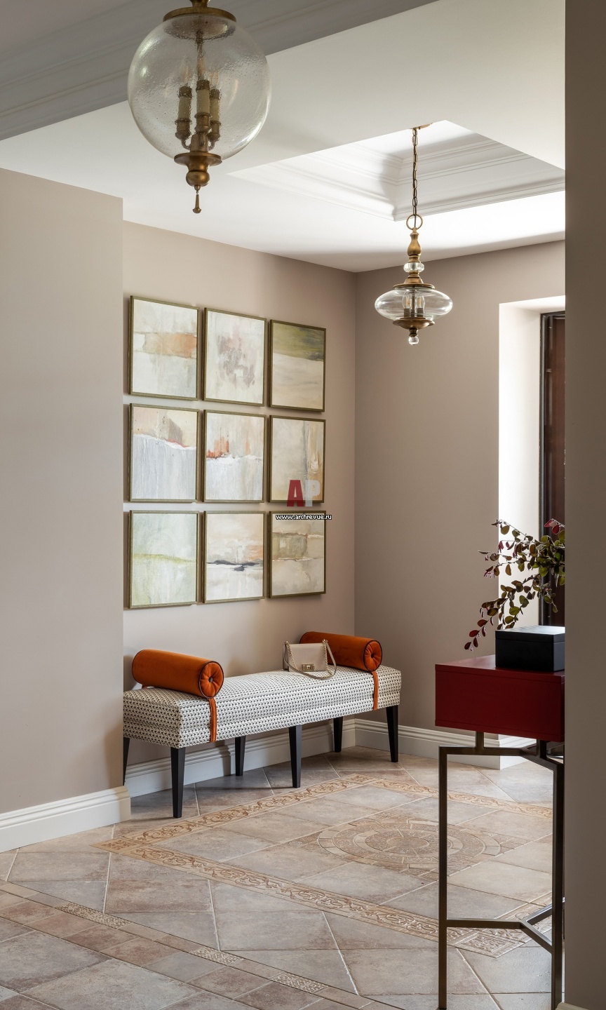 Прихожая. Плитка, Tagina. Светильник, Feiss. Панно из 9 картин работы Александра и Ирины Антоновых.