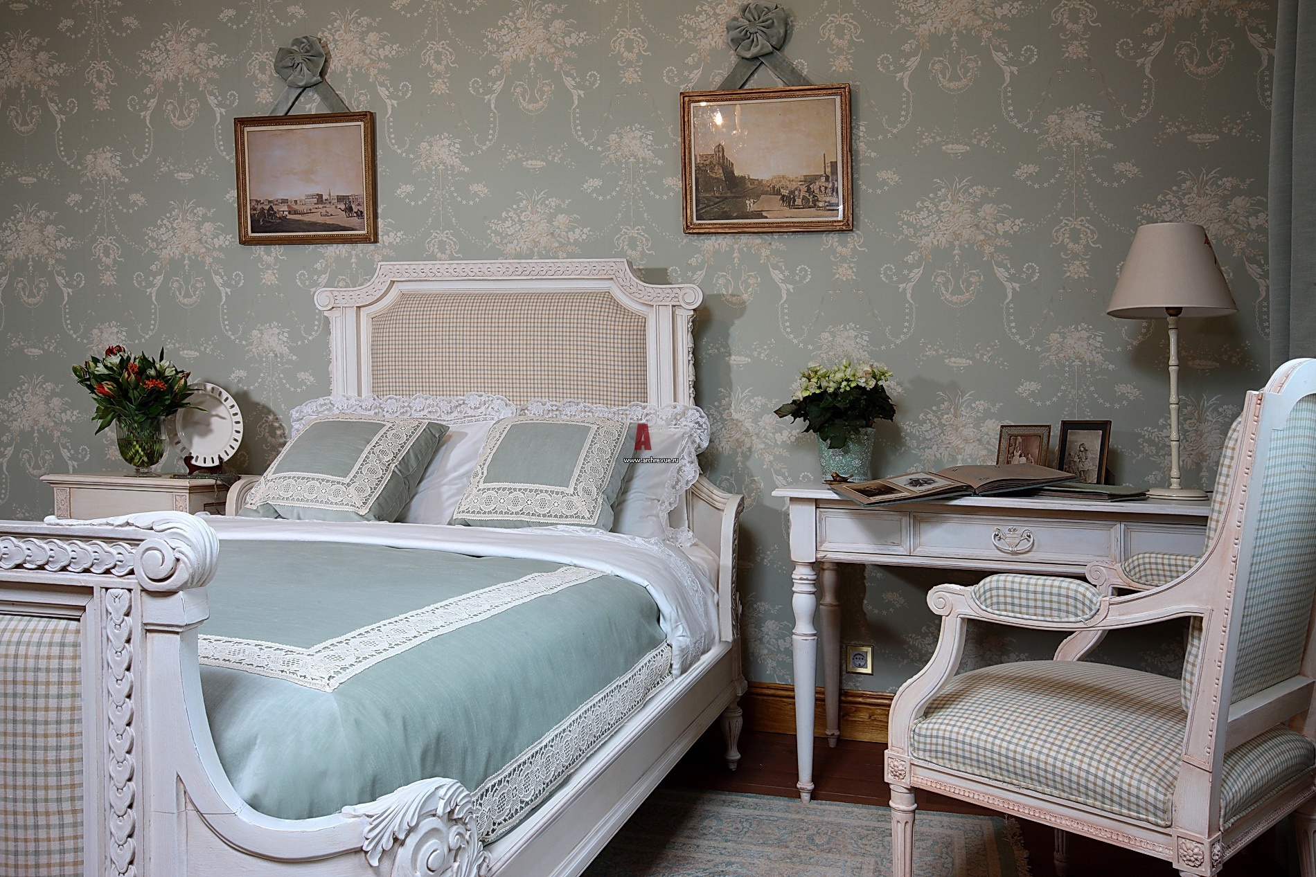 Зона будуара в голубой гостевой. Мебель в английском стиле.