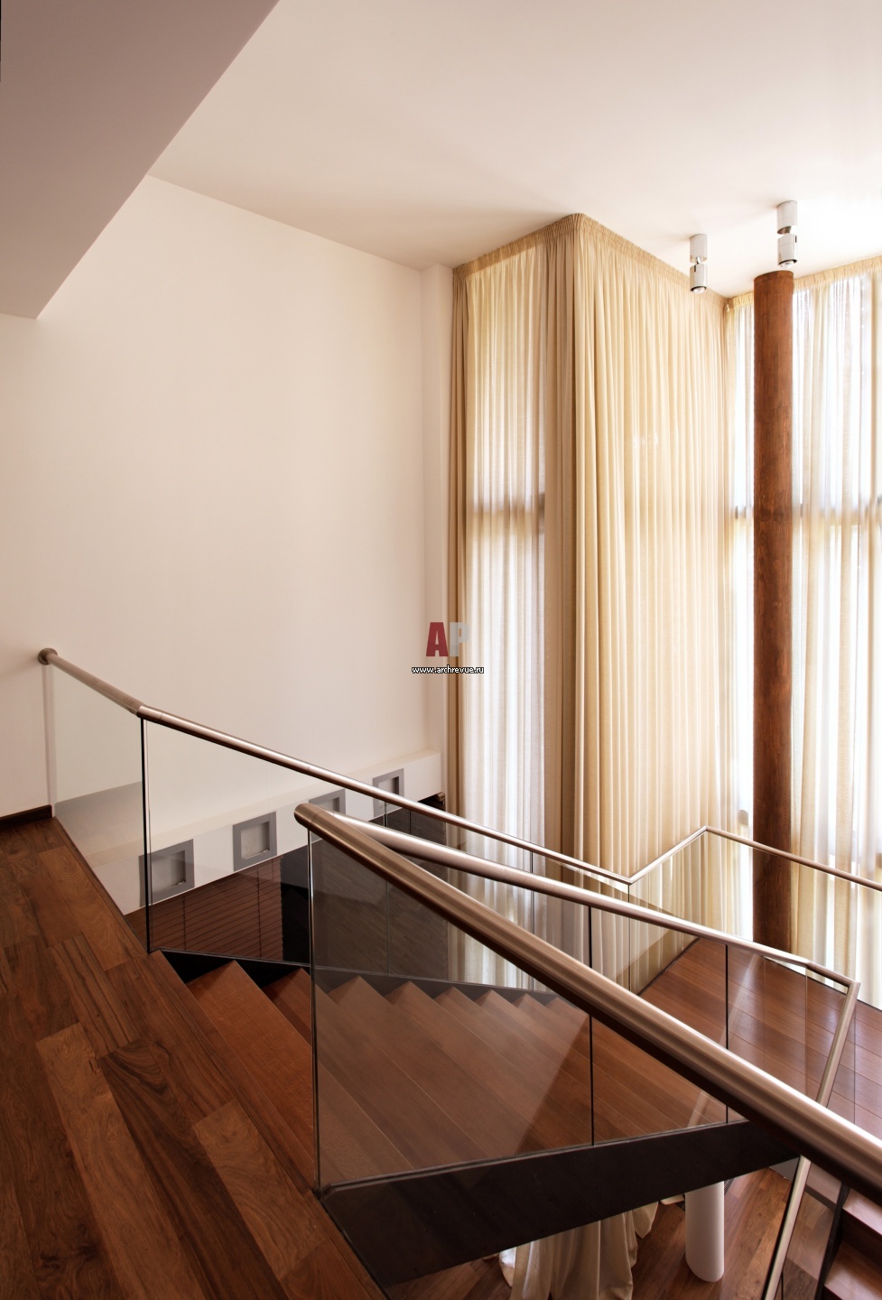 Интерьер лестничного холла в современном доме.