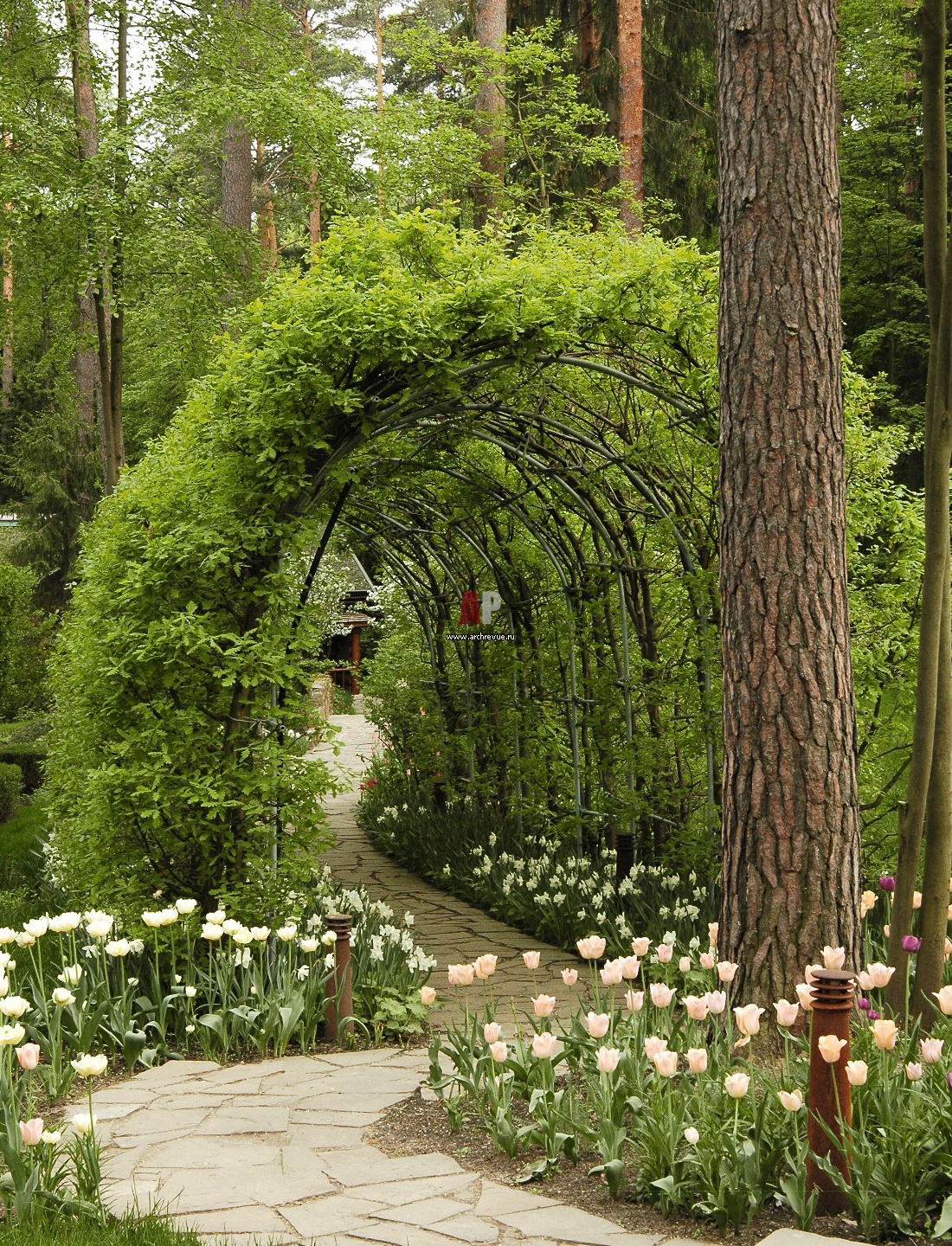 Фото ландшафта. Дубовая арка в лесной зоне.