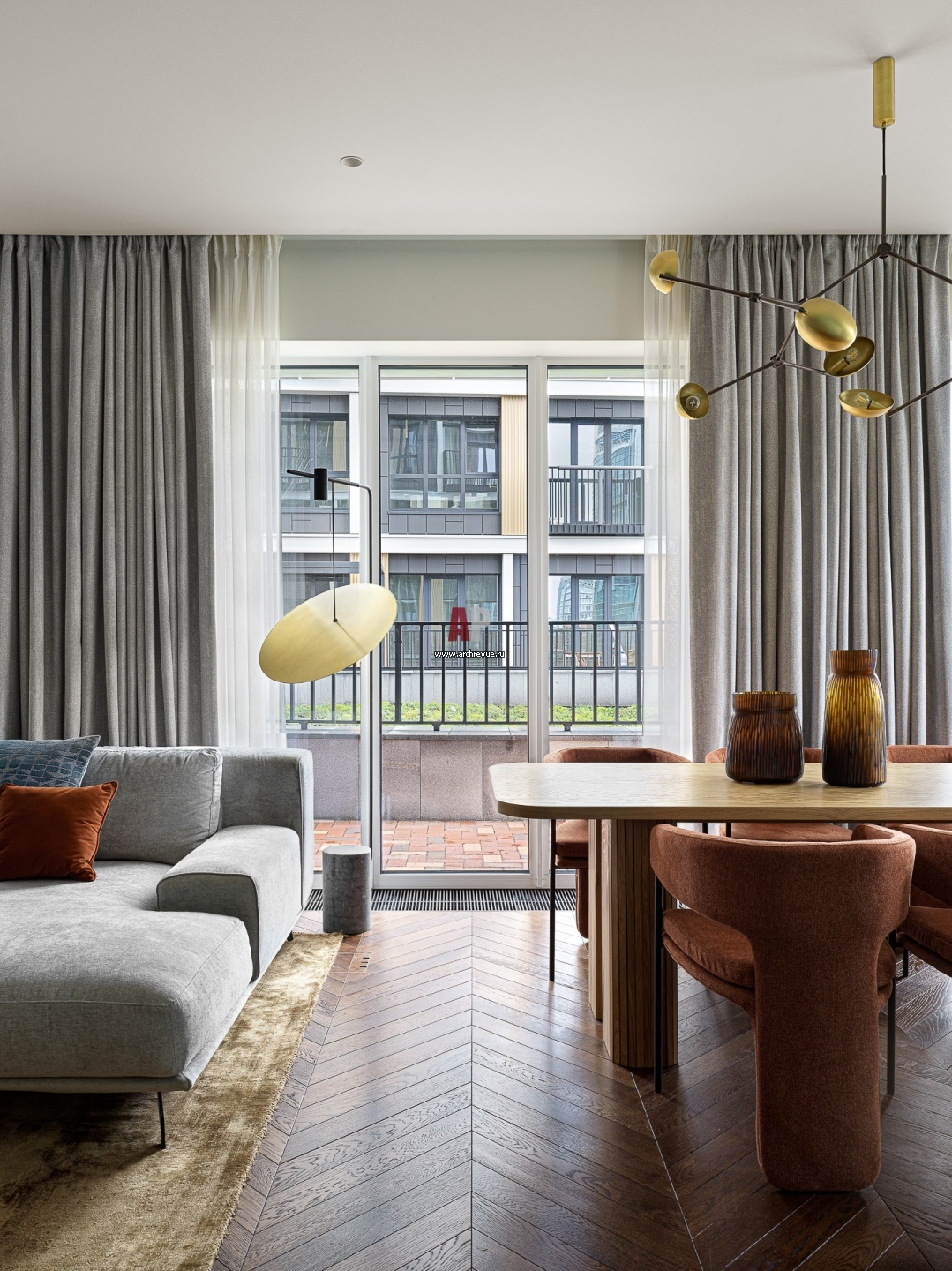 Среди преимуществ квартиры – большое количество окон и собственная просторная терраса площадью почти 30 кв. м с видом на внутренний двор жилого комплекса. На полу – инженерная доска.