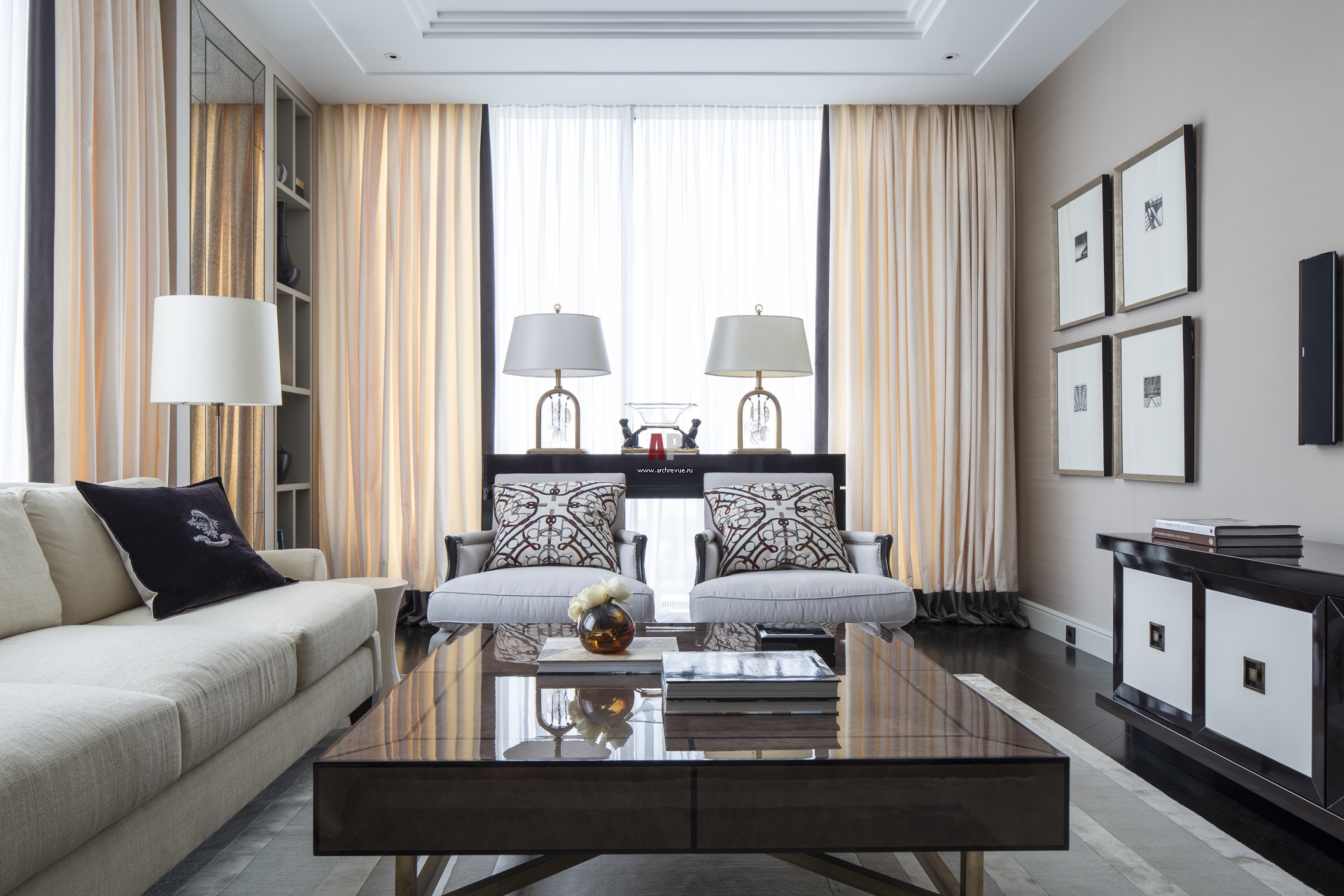Интерьер московской квартиры с элементами ар-деко. Диван, Baker. Ковер, The Rug Company.