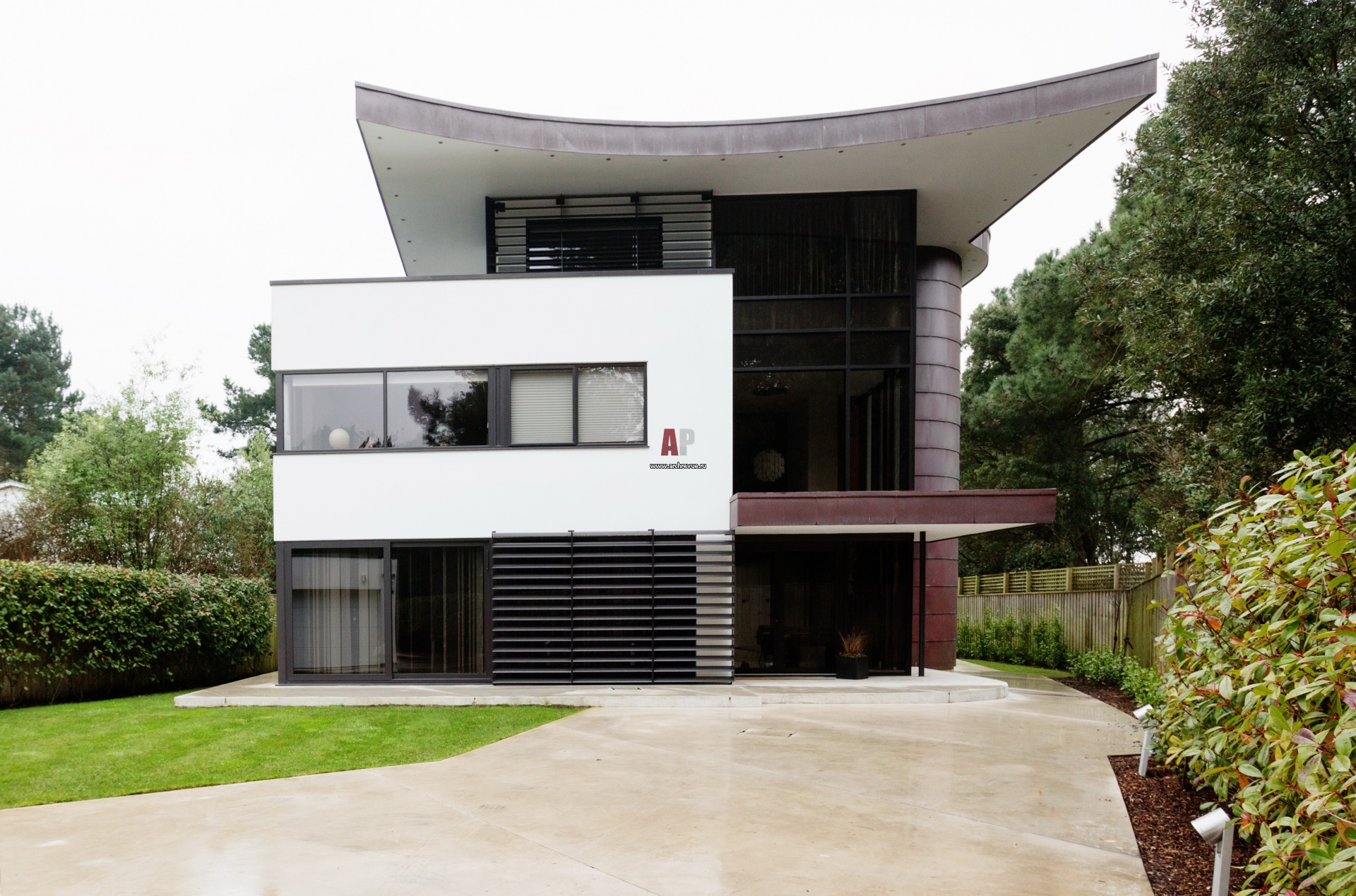 Фото модернистского фасада особняка на английском побережье. Архитектурный проект – бюро Tigers Eye Group, архитектор Тоби Питерс (Toby Peters).