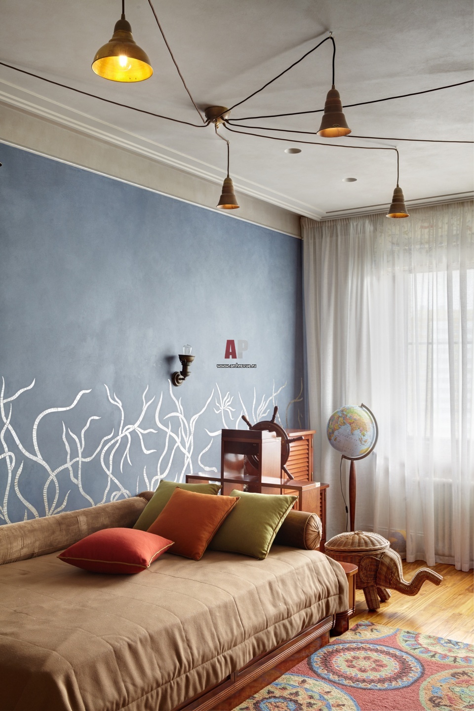 Интерьер детской выполнен в более современном ключе. Книжные секции, стол и шкаф, Caroti.
