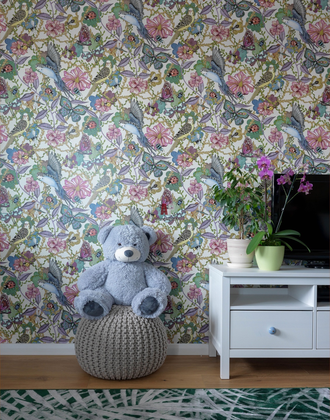 Спальня дочери. На стенах – фотообои Photowall (Швеция) с активным цветочным рисунком.