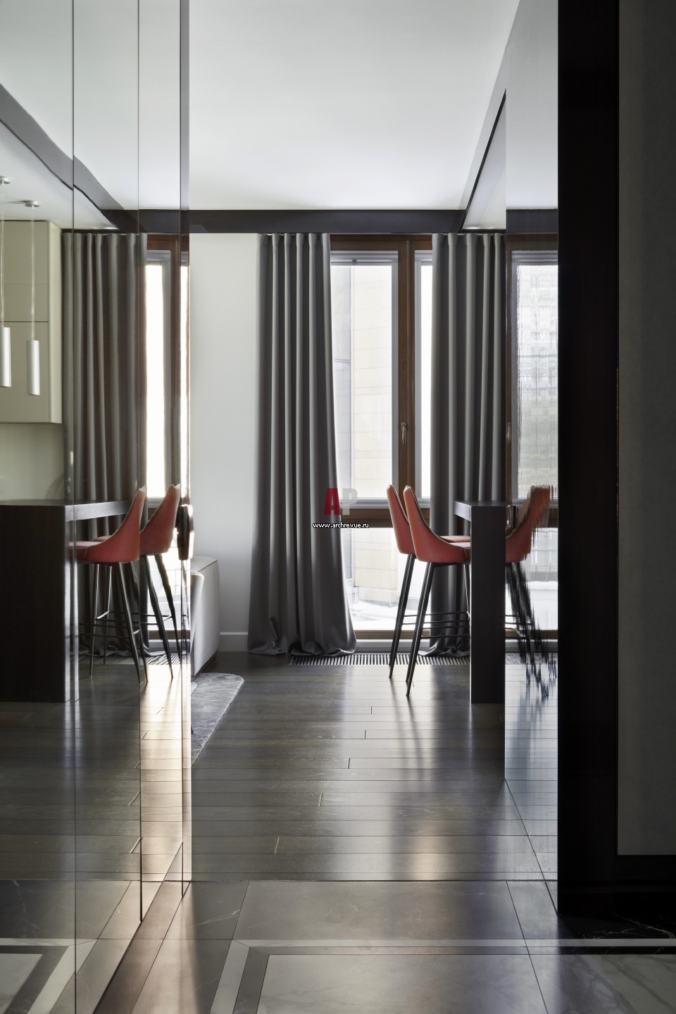 Зеркала и отражающие поверхности увеличивают площадь и делают интерьер интереснее.