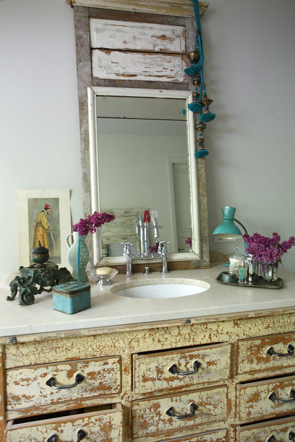 Фрагмент ванной комнаты. Роль умывальника играет переделанный антикварный комод.