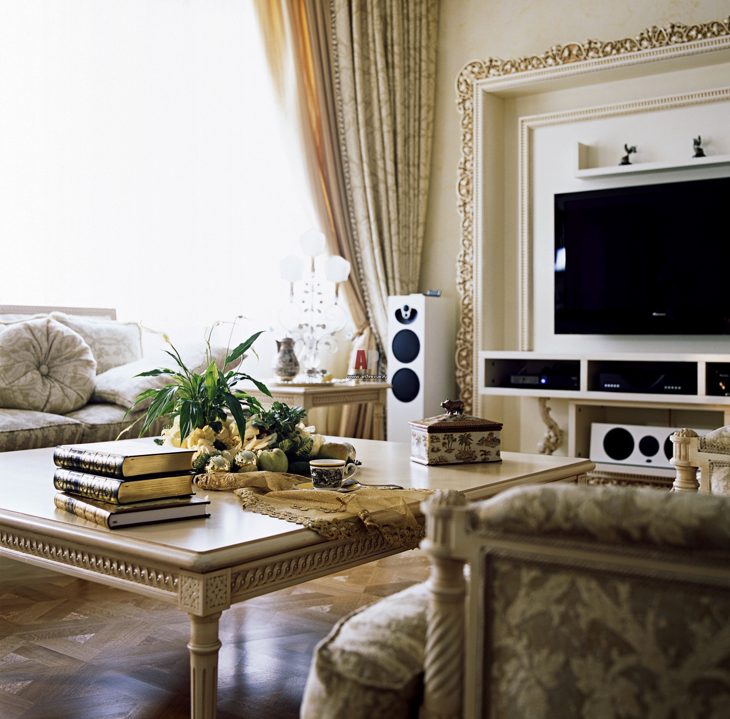 Фото интерьера гостиной с приметами разных классических европейских стилей.