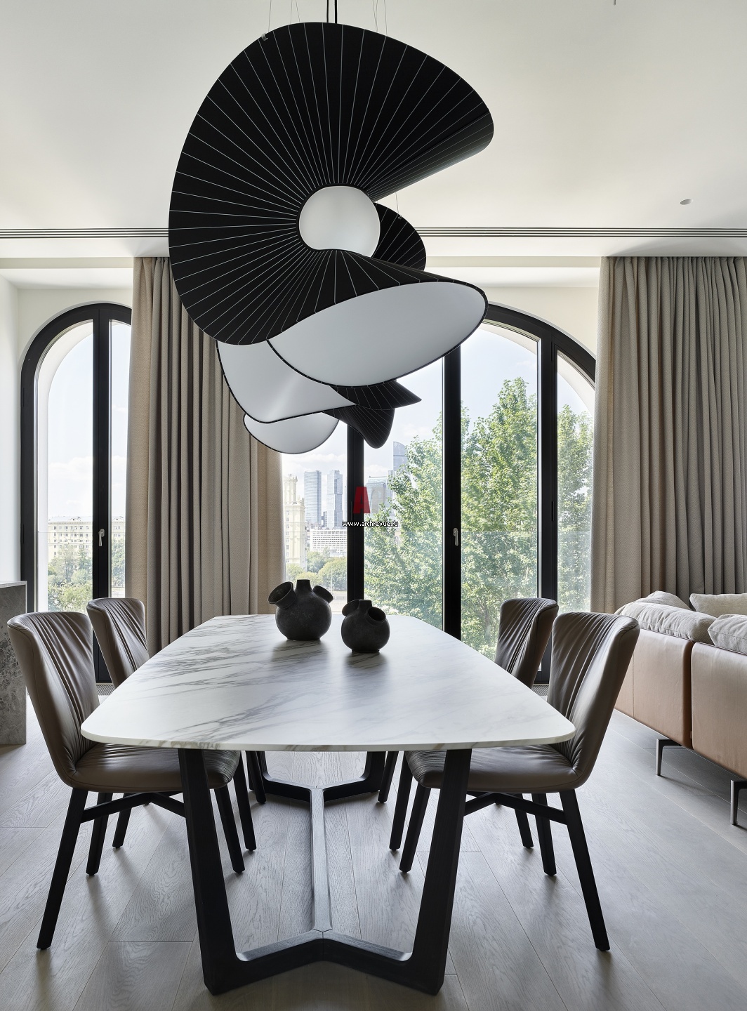 Столовая. Обеденный стол, Poliform, модель Concorde. Кресла, Draenert, модель Dexter.