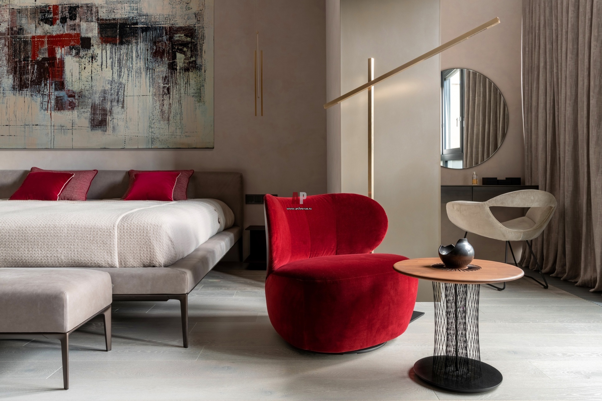 Туалетный столик Walter Knoll, модель Vladi на присоединенной лоджии в спальне. Красное кресло, Walter Knoll, модель Bao.