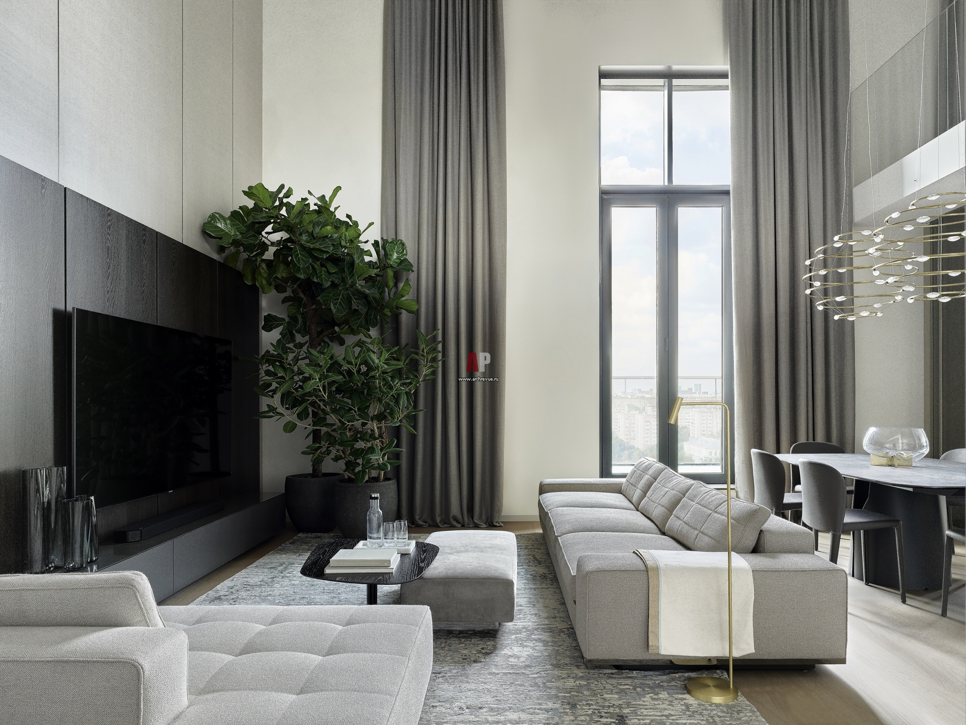 Интерьер 2-х этажного пентхауса с видом на сталинскую высотку МГУ