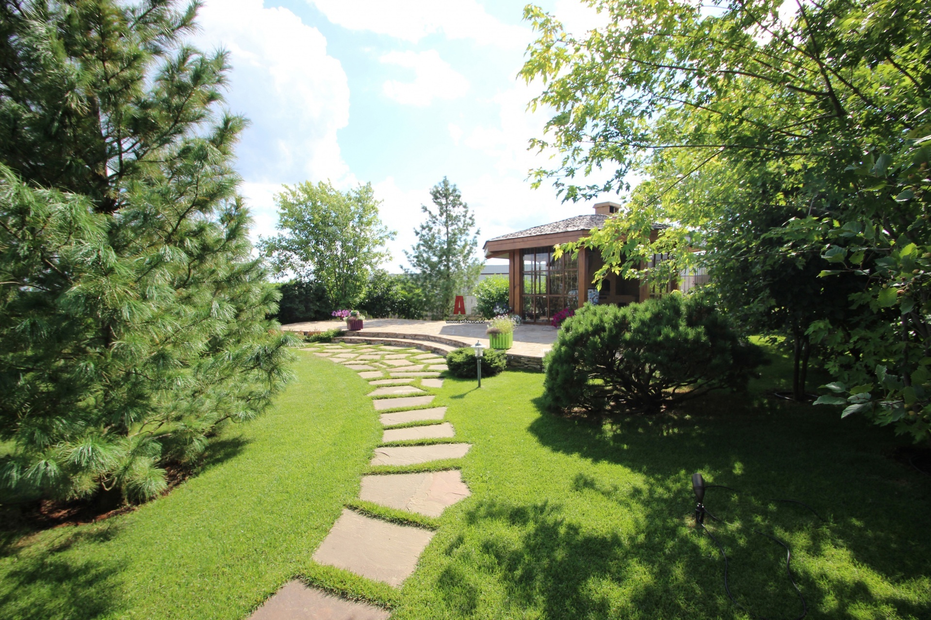 Частный парк с лужайкой и беседкой в коттеджном поселке