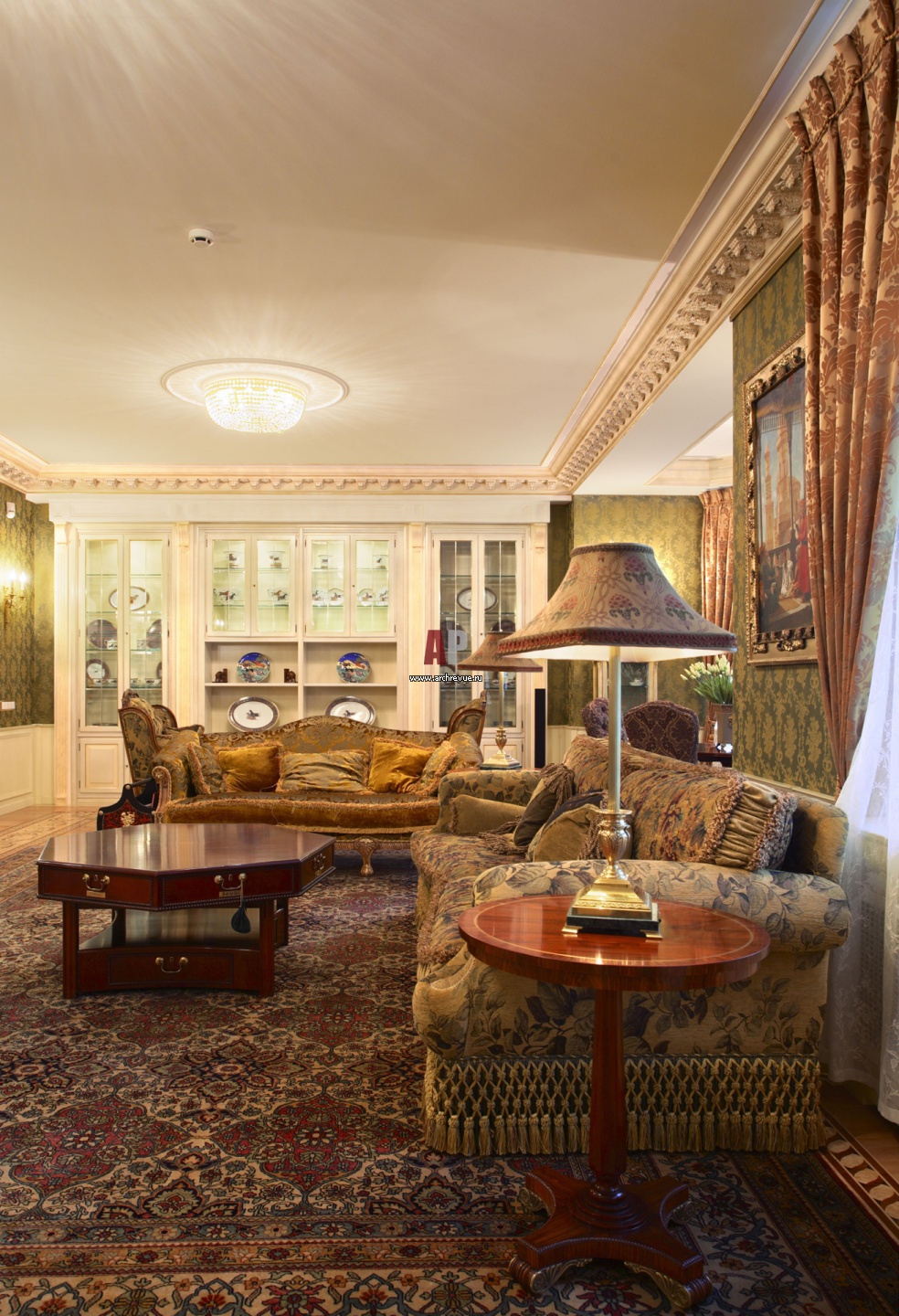 Непременный атрибут классического интерьера – лепнина. Лепной декор из гипса, тонированный и золоченый вручную.