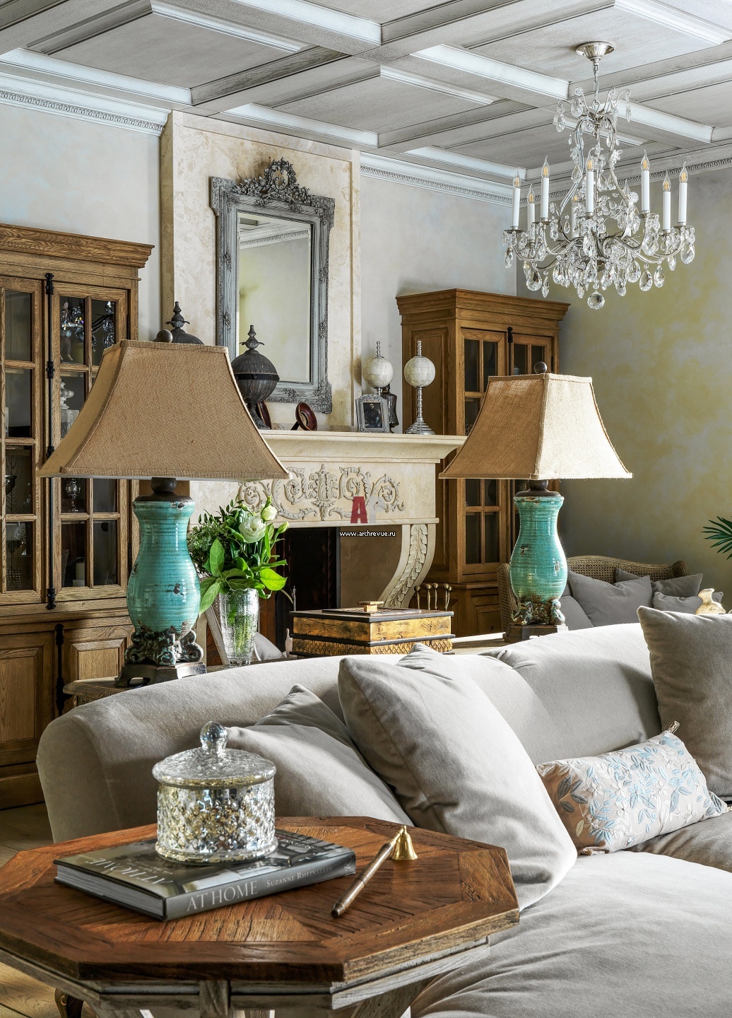 В интерьере гостиной соединены американская классика и французский Прованс.