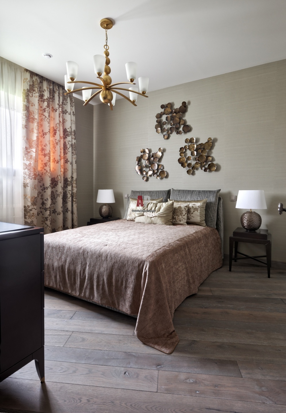 Интерьеры спален решены в спокойной стилистике с природными цветами.