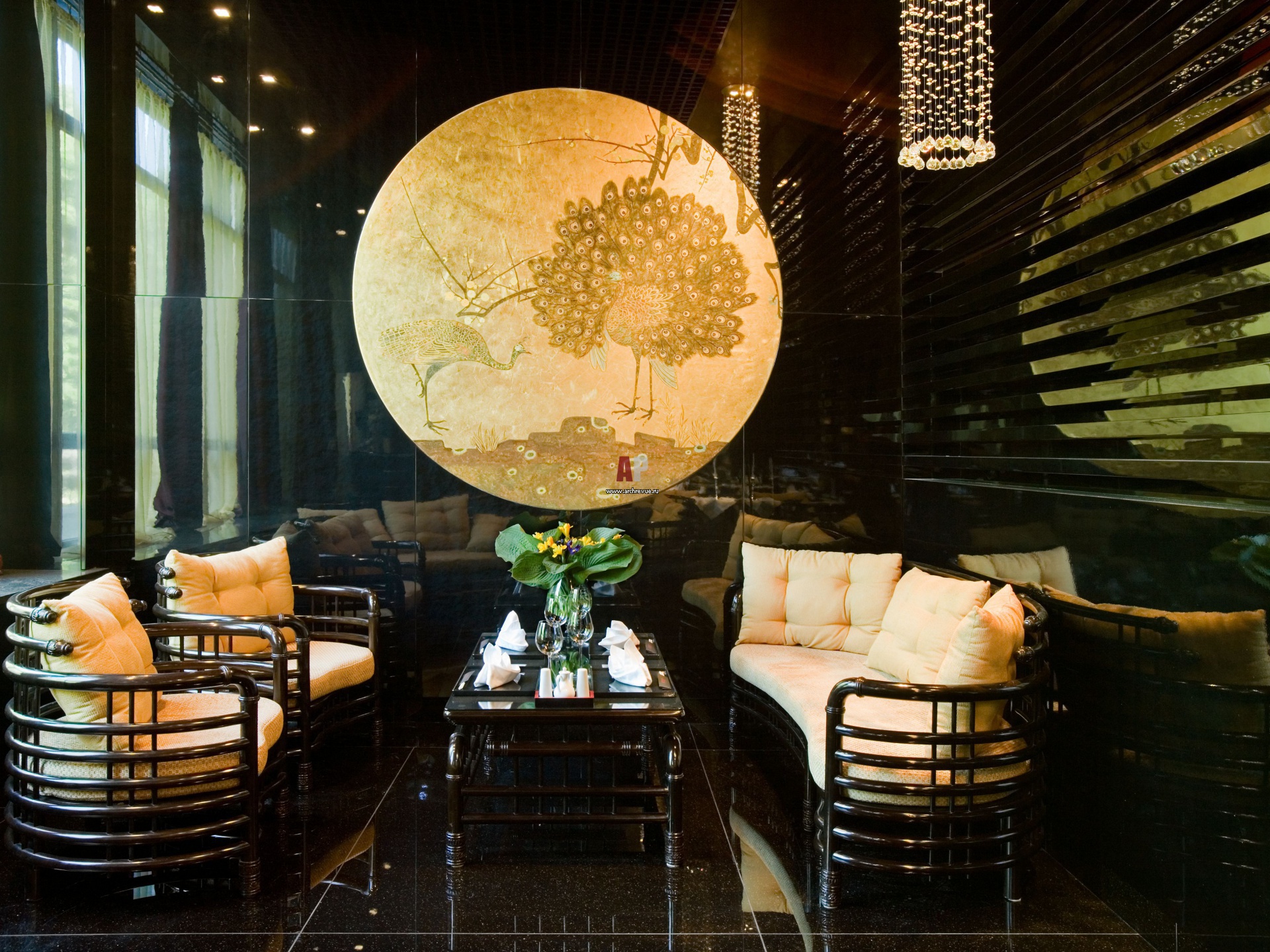 Деревянные панели покрыты рояльной полировкой с перламутровым напылением. Полы выложены синтетическим материалом с эффектом «жидкого стекла» и светящимися, как алмазная крошка, вкраплениями.