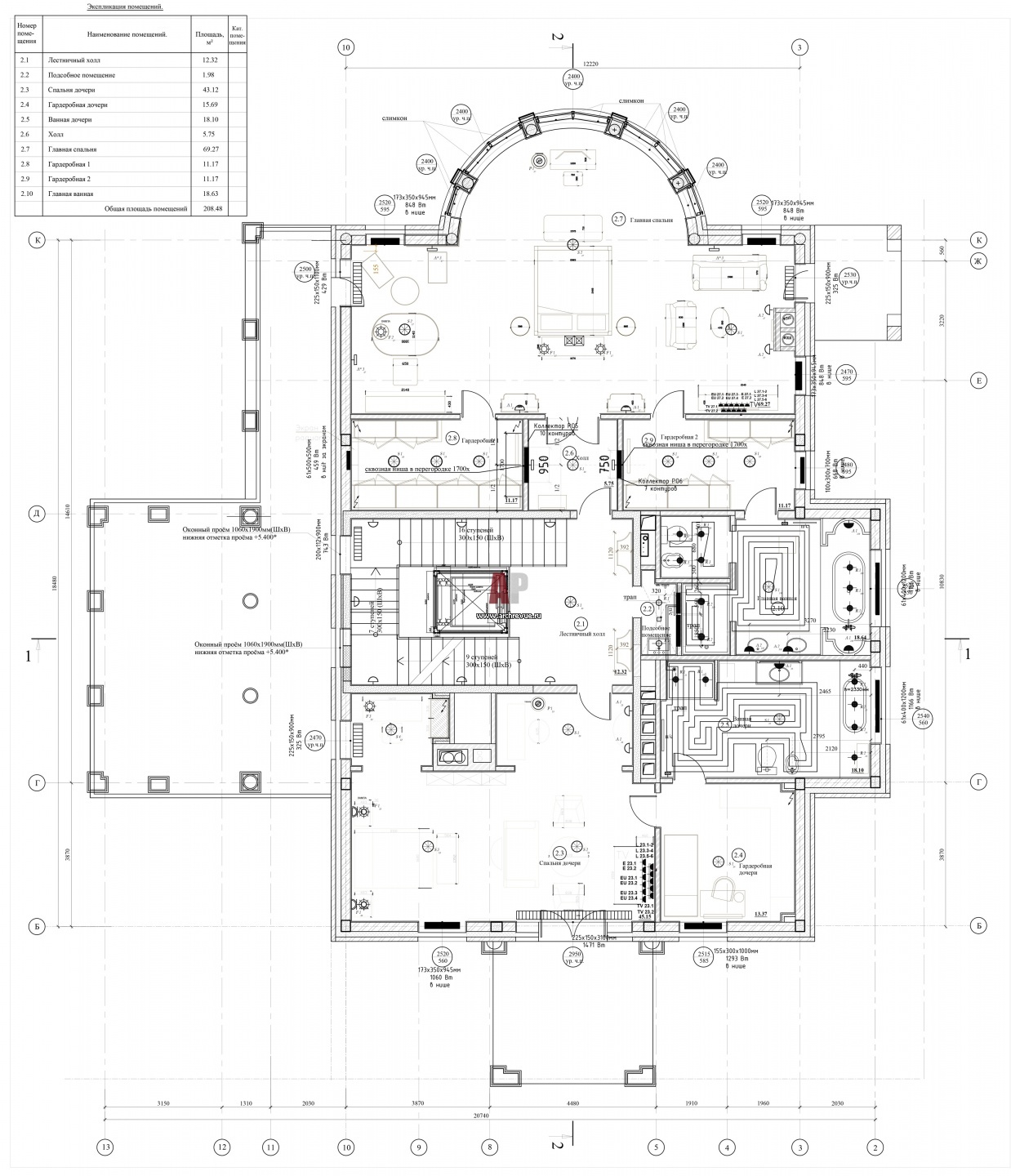 План второго этажа трехэтажного частного дома в центре Санкт-Петербурга. Общая площадь – 1400 кв. м.