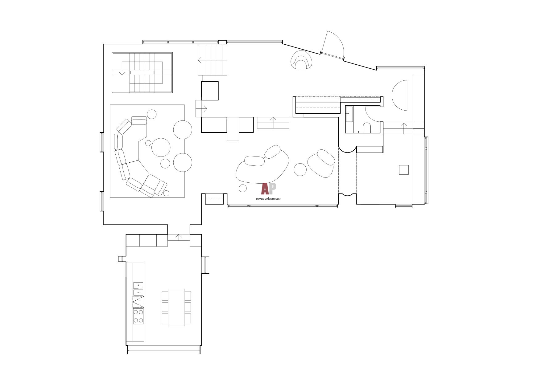 План первого этажа бетонного дома в Подмосковье. Общая площадь - 420 кв. м.