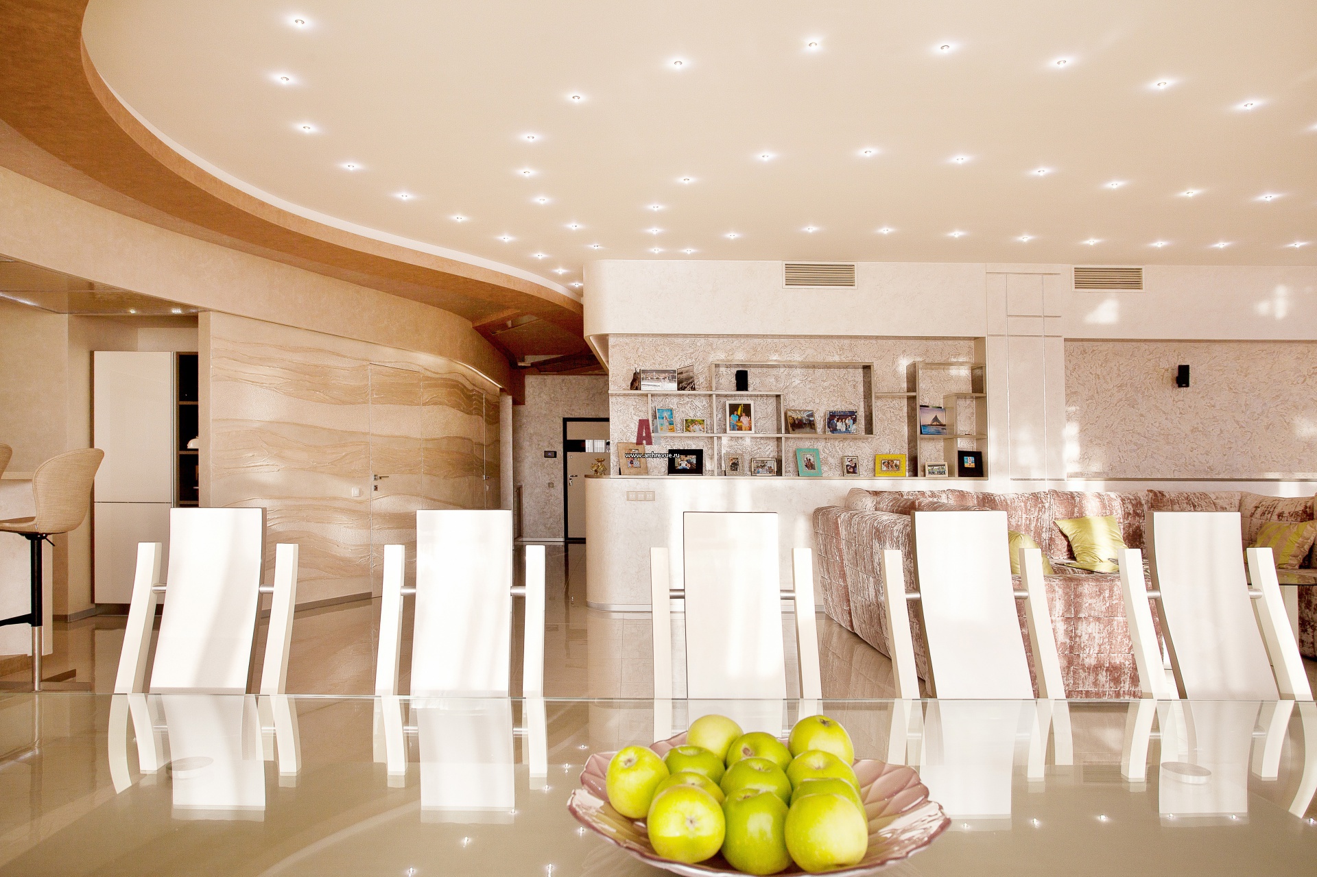 Интерьер гостиной. Точечные светильники на потолке символизируют звездное небо. Диван, Estetica.