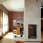 Камин – элемент зонирования студийной общей зоны. Колонна каминной трубы облицована травертином, дверца печи выполнена из затемненного стекла.