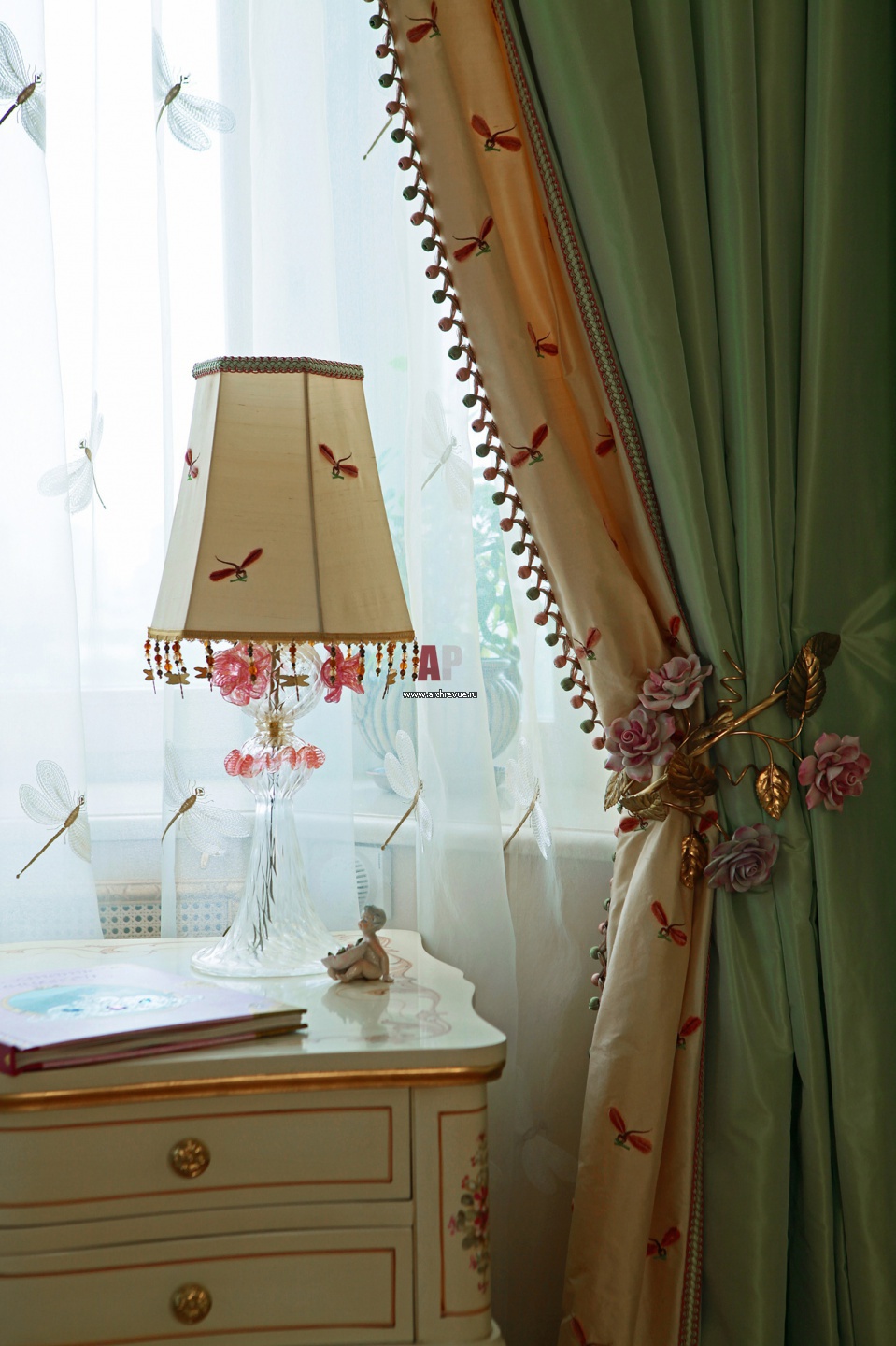 Фрагмент детской комнаты в стиле барокко. Подхваты на шторах из полудрагоценных камней.