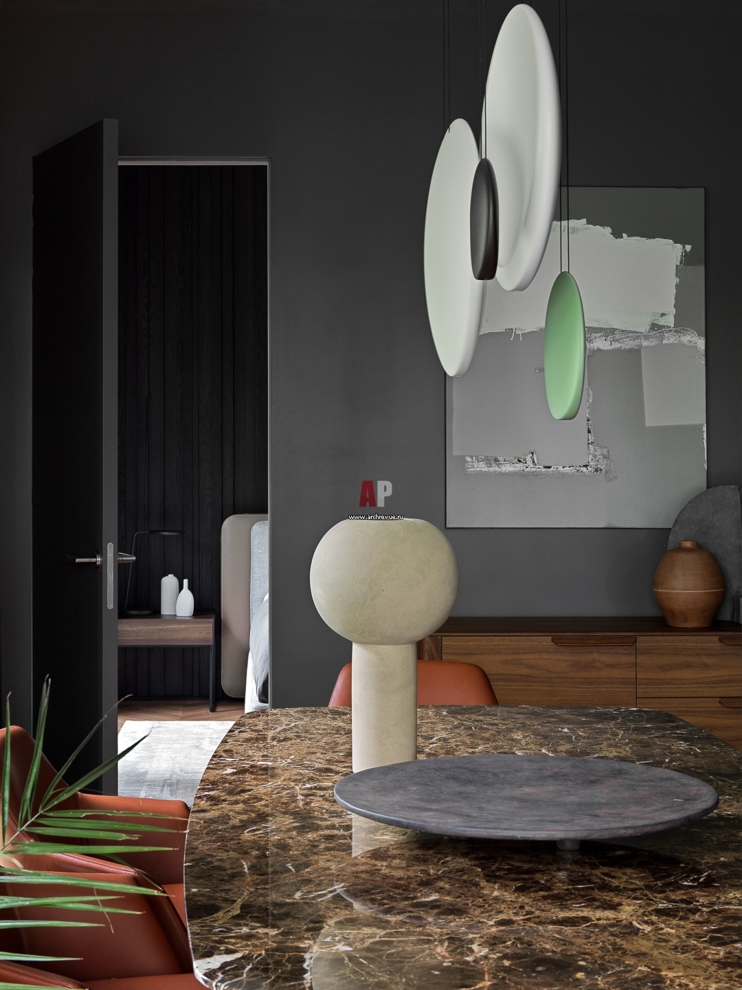 Темная квартира в лесу. Фрагмент интерьера столовой.