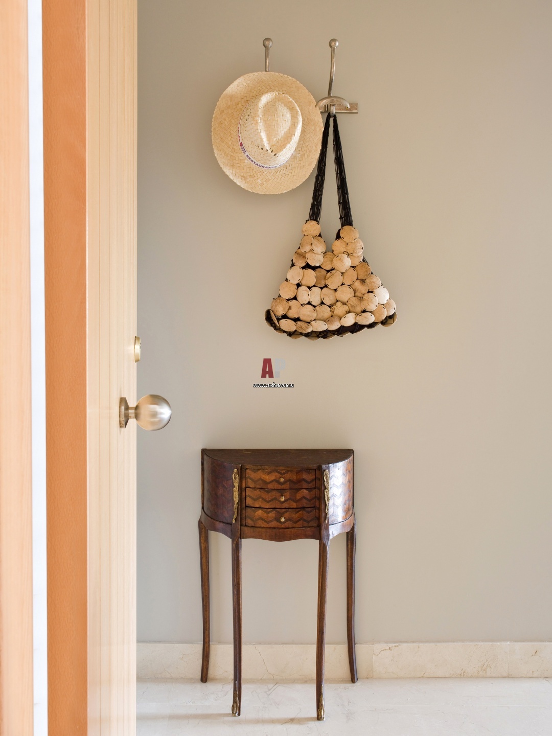 Напротив арабского кустарного зеркала и брутальной консоли в холле находится раритетная классическая консоль, приобретенная на блошином рынке в соседнем городке.
