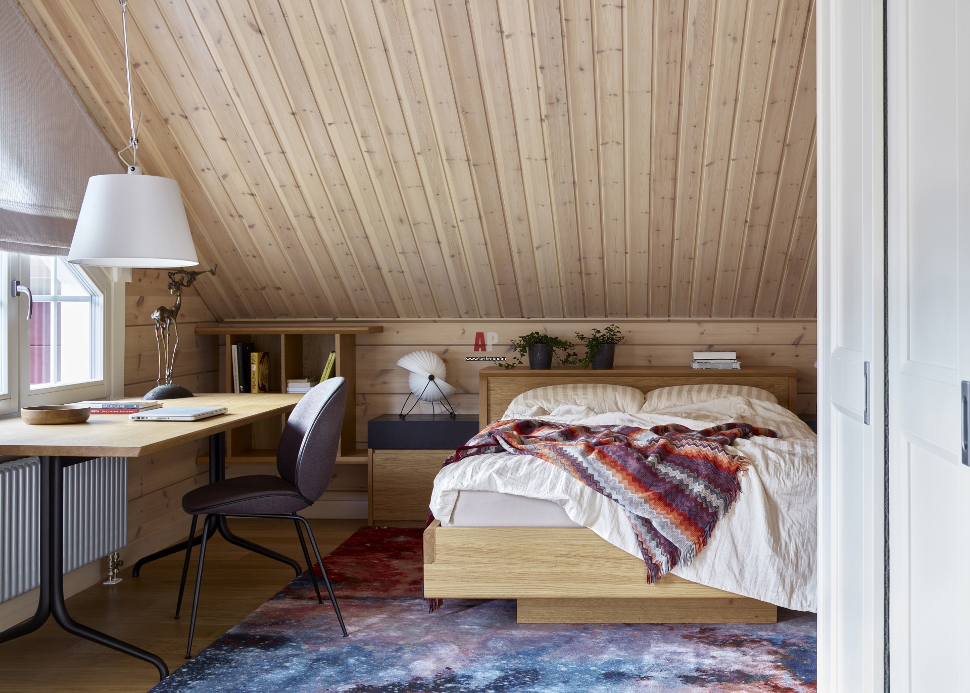 Комната сына. Кровать, Team 7. Стол, Vitra. Стул, Gubi. Люстра, Artemide. Ковер «Звездное небо», Jan Kath.