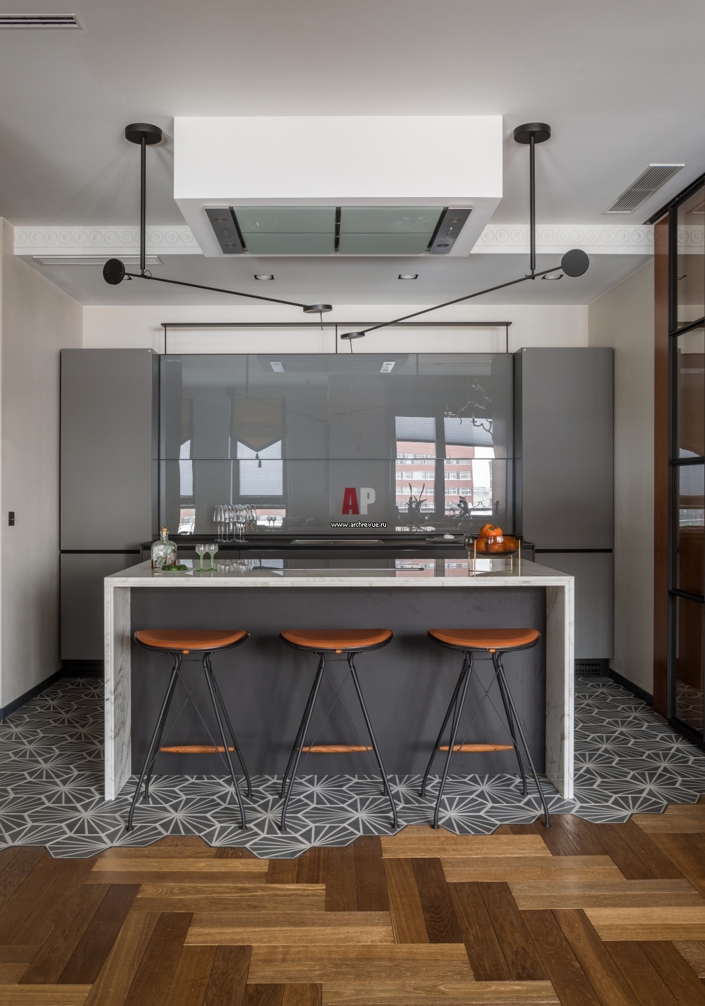 Харизматичная квартира с винтажными и антикварными предметами. Кухня в современном стиле. Она соединяется с пакетом «двойная елка».