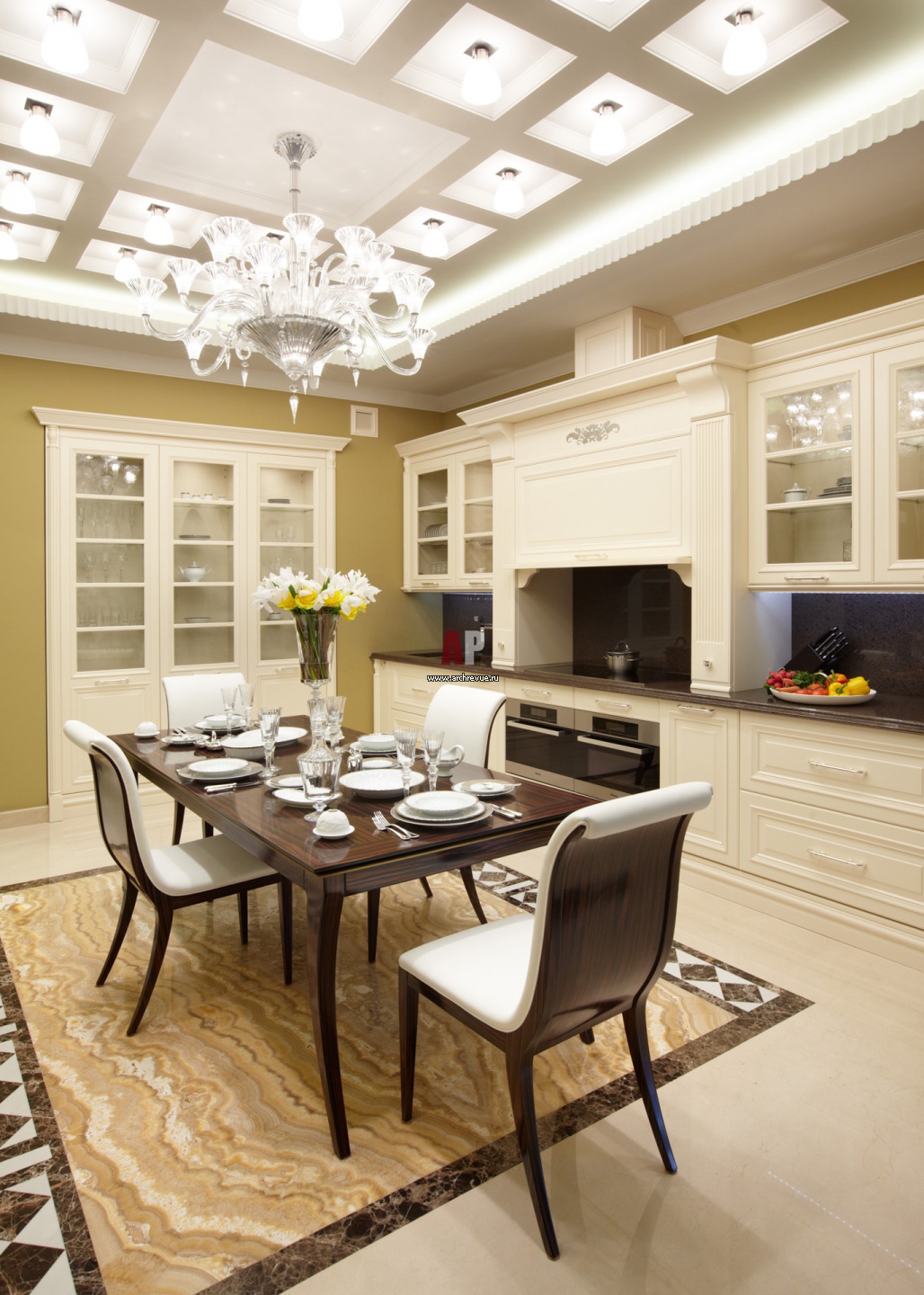 Кухня в светлой цветовой гамме. Кухонный гарнитур Cesar цвета слоновой кости классических форм с филенчатыми деталями, поставщик «ТРИО-Интерьер».