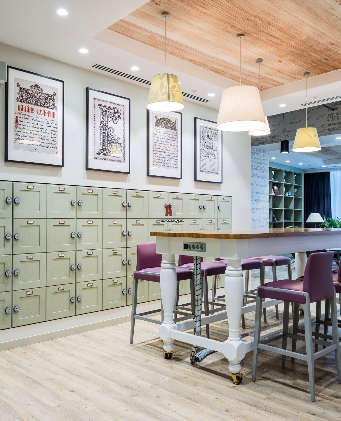 Планировка и наполнение офиса обеспечивают свободное передвижение по офису и выбор оптимального места для работы. Вся корпусная мебель имеет встроенные розетки, USB-порты; использованы акустические и видео системы последнего поколения.
