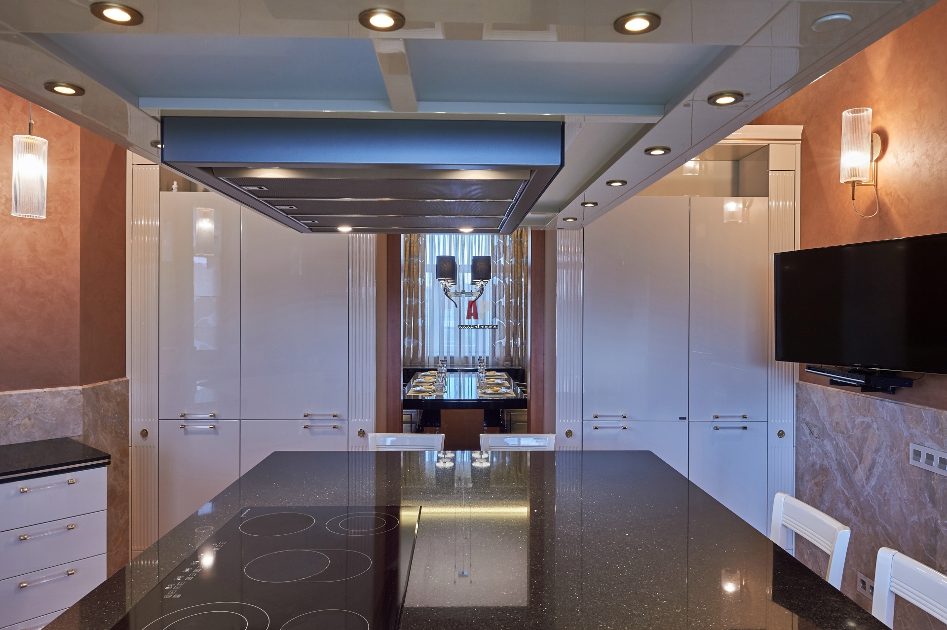 Интерьер кухни дома в стиле ар-деко. Кухонный гарнитур с островом, Scavolini.
