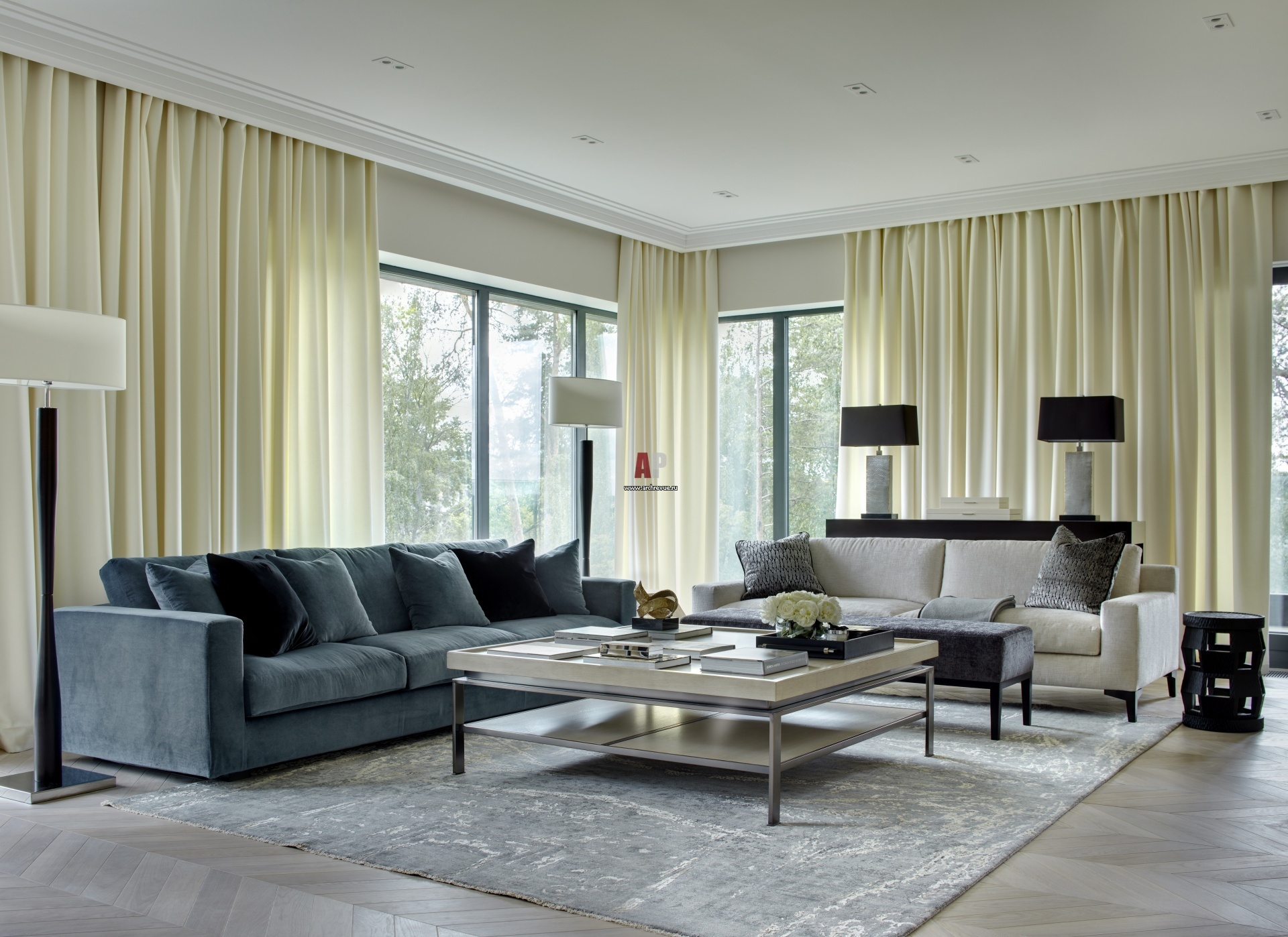 На полу всех жилых помещений – паркет «французская елка», выбеленный дуб под маслом. По нему приятно ходить босиком.