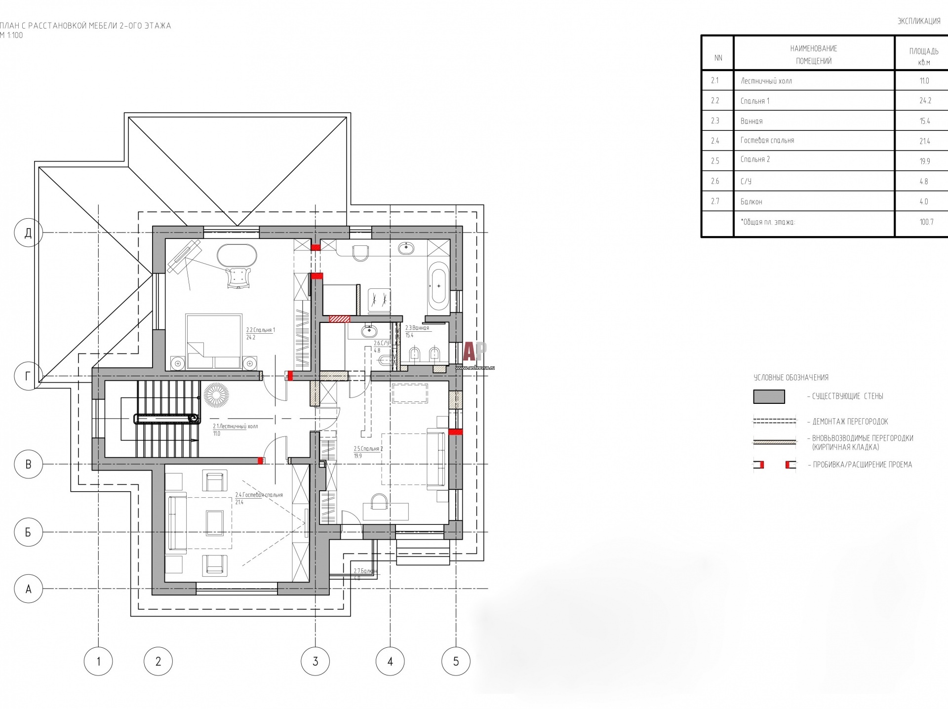 Планировка 2 этажа небольшого типового 2-х этажного дома в Подмосковье после реконструкции.