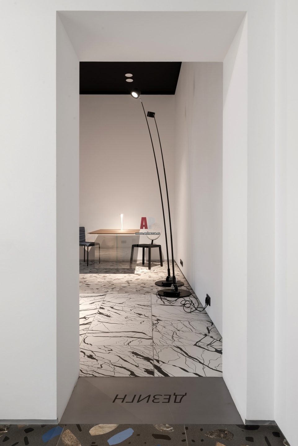 Шоу-рум состоит из трех залов. Композиционно они решены в разных стилях, но объединены металлической конструкцией – ключевой деталью проекта.