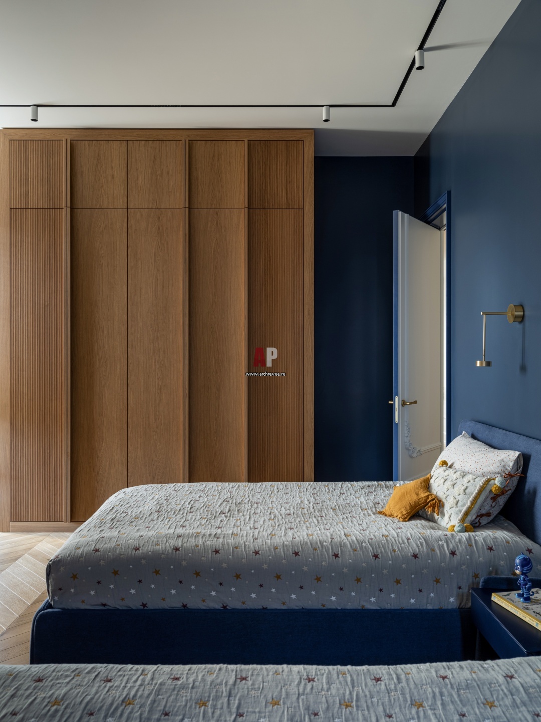 Комната сына. Кровать, Bonaldo. Дубовый шкаф с реечными фасадами изготовлен на заказ. Свет, Giopato & Coombes.